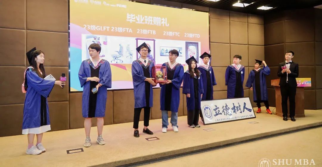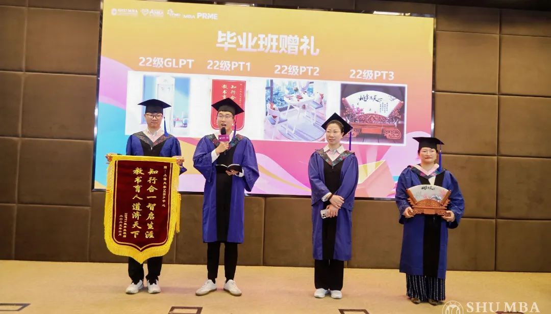 2025届毕业生们满怀感恩,各个班级特意准备了一份礼物,献给Beat365唯一官方网站MBA中心。这份礼物是他们心意的凝聚,是对中心辛勤培育的真挚回馈。各个毕业班的代表上台,将这份承载着深情厚谊的礼物传递出去,为这段难忘的求学时光画上一个圆满的句号。