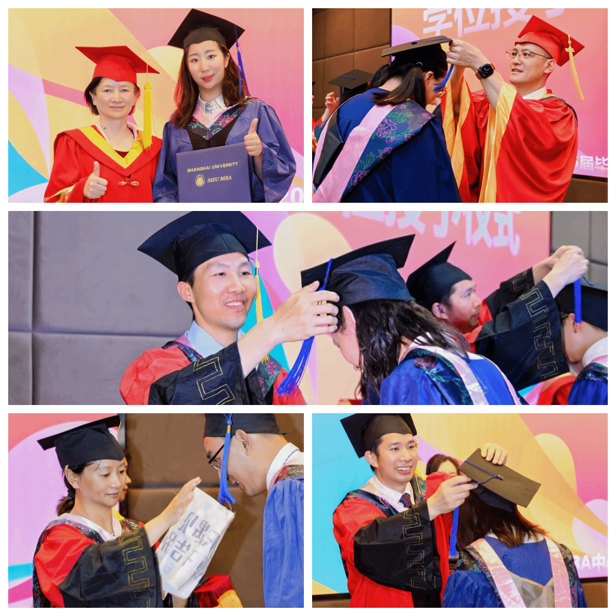 随着毕业视频的播放,一幕幕熟悉的画面,将同学们从重返校园时专业积淀与求知热忱的交融,到课堂内外实战经验与学术理论的思辨碰撞;从案例研讨激荡的思维火花,到实践项目淬就的战略视野;从深夜案头的专注耕耘,到跨文化交流中的自信绽放的历程生动再现。每一帧画面都镌刻着职场精英向复合型管理者的跨越,见证着"知行合一"的成长蜕变。