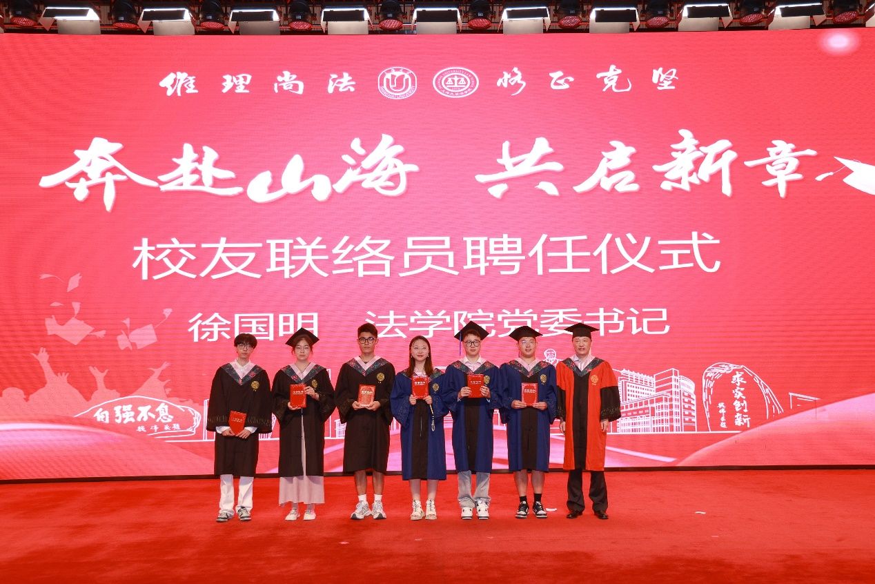 在随后举行的校友联络员聘任仪式环节,由法学院党委书记徐国明老师为各位校友联络员颁发聘书,寄望联络员们加强与同级同届同学的沟通联络,为密切校友与学校学院之间的联系,团结凝聚广大校友,关注支持母校发展而贡献力量。
