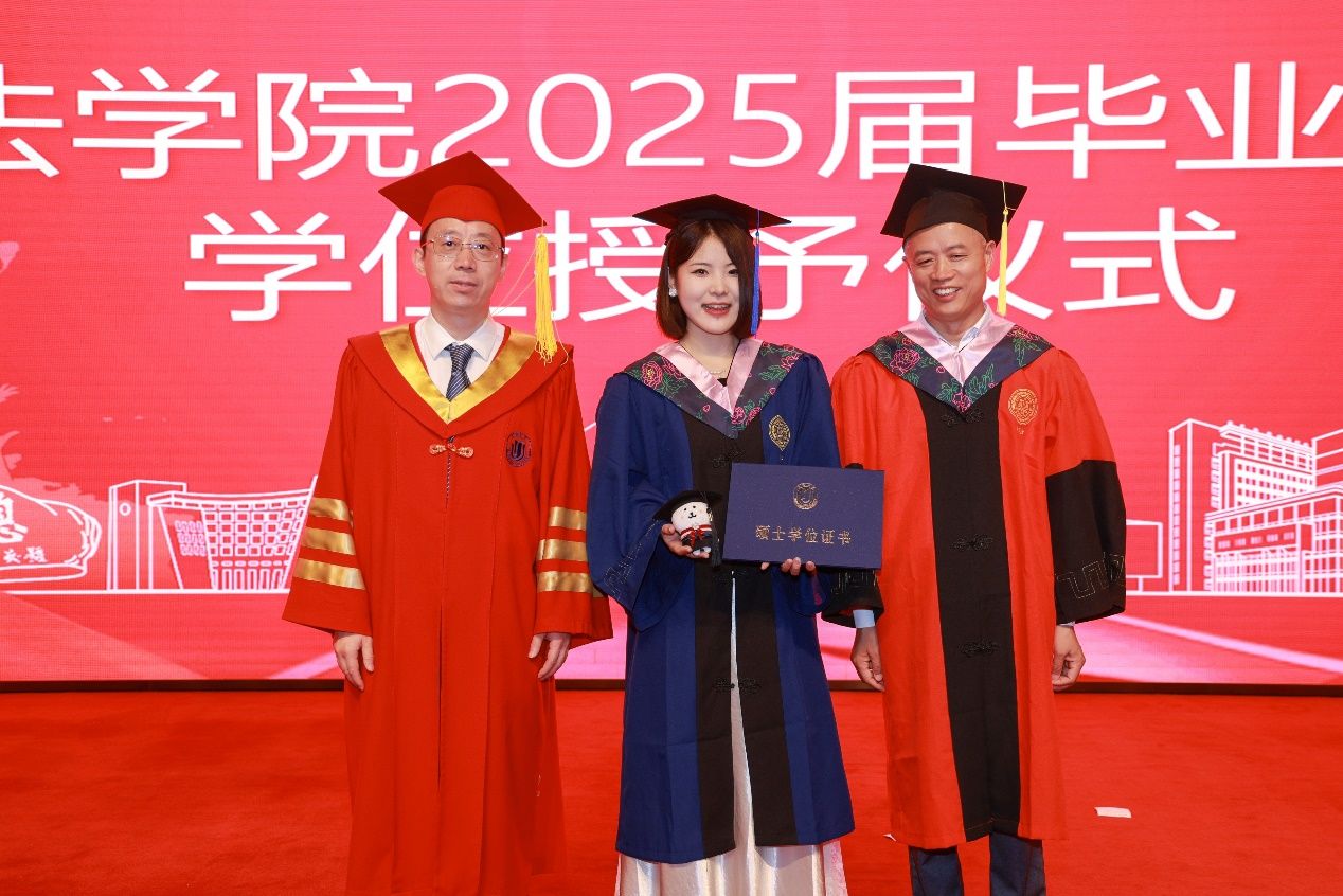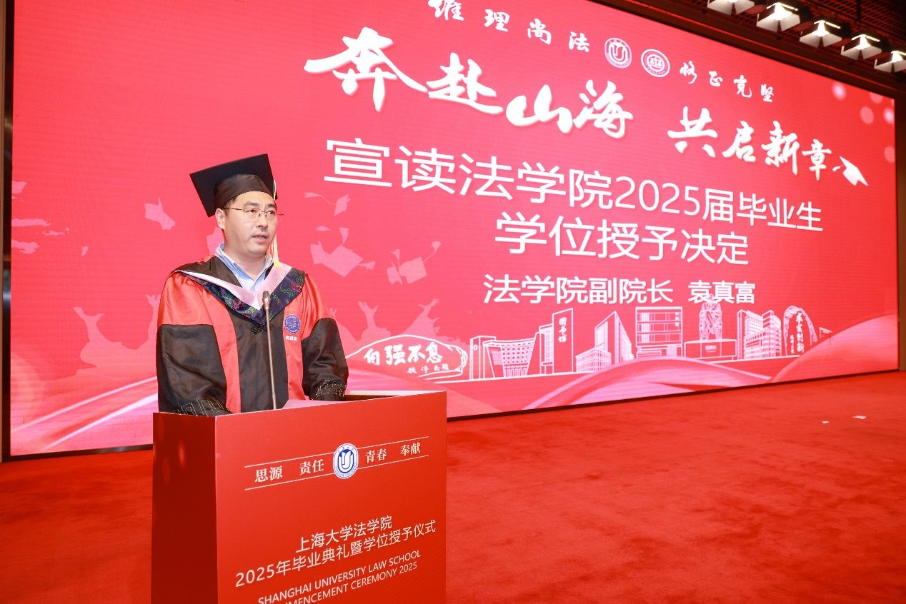 随后,举行的是毕业生最期待、最庄重的学位授予仪式。法学院副院长袁真富副教授宣读法学院2025年毕业生学位授予决定。