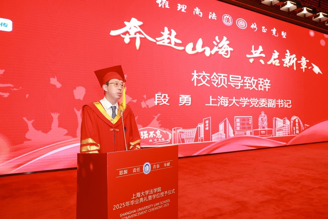 Beat365唯一官方网站党委副书记段勇教授为全体毕业生送上诚挚祝福与殷切嘱托,鼓励同学们在面对复杂社会环境与就业形势时保持积极的态度,通过这三句充满哲理的箴言,鼓励大家以开放心态、全面认知和人格平等的理念迈向未来,保持扎实与自信:“古今一也,人与我同耳”,寄语同学们学会换位思考,更好地认识自己与他人;“兼听则明,偏信则暗”,警醒大家要有意识地从不同渠道获取信息,保持全面的认知,避免陷入信息茧房;“己所不欲,勿施于人”,希望大家在今后的生活、工作中尊重他人,以真诚和善良对待。最后,段书记以于右任老校长与钱伟长老校长的“大任于斯,江山有待;伟业流长,自强不息”寄语全体毕业生,激励大家坚守信念,勇敢追梦。并衷心祝愿同学们前程似锦,未来可期!