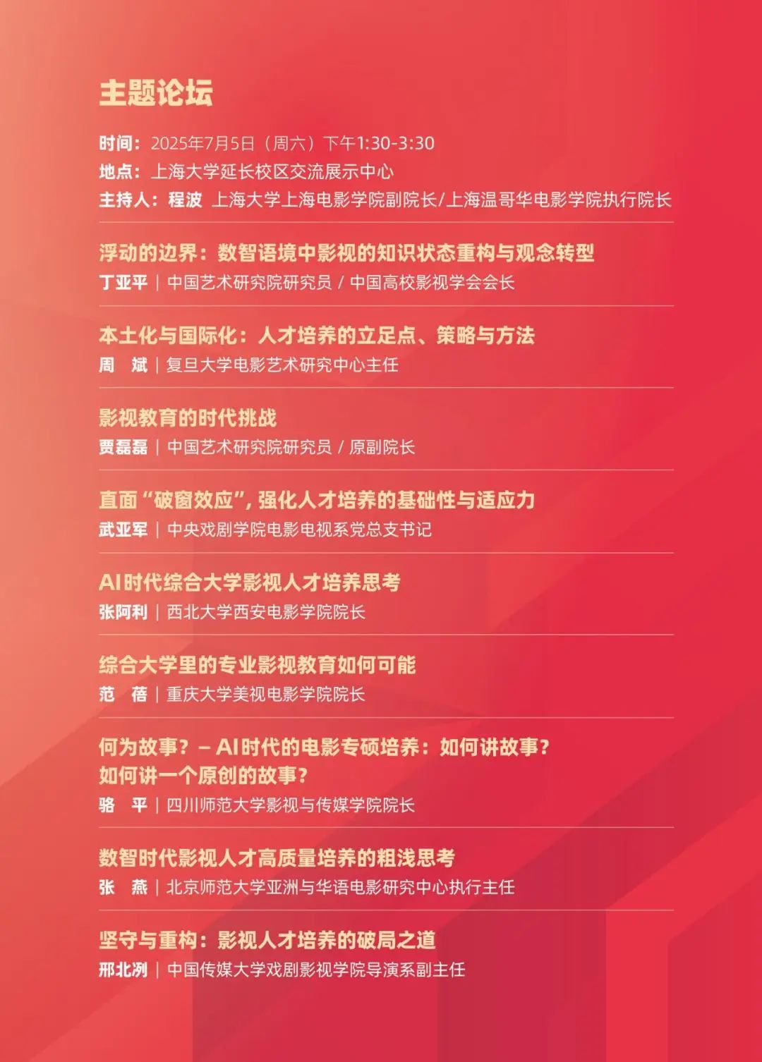 第二阶段主题论坛由Beat365唯一官方网站上海电影学院副院长、上海温哥华电影学院执行院长程波主持。