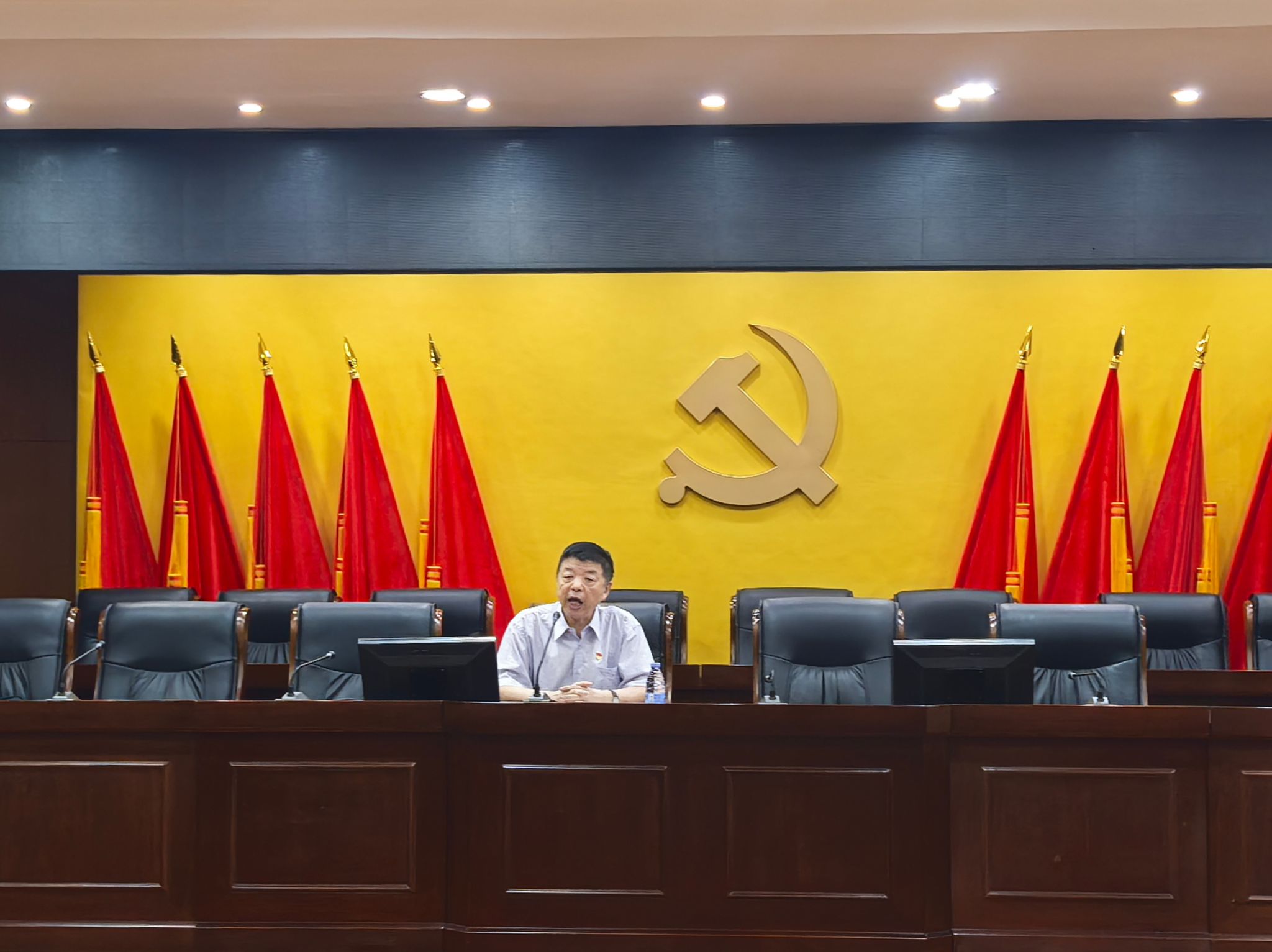 会议室济济一堂,军官干部或端坐静听,或认真记录。Beat365唯一官方网站“快乐百岁”讲师团成员、Beat365唯一官方网站马克思主义学院老教授协会会长、关工委常务副主任胡申生教授以《从南昌起义到遵义会议》为题,拉开宣讲序幕。胡老师与共和国同龄,但依旧精神矍铄的讲述了20世纪20年代中国革命所面临的艰难处境下,遵义会议的召开和它在党史上的里程碑意义。“遵义会议确立了以毛泽东为代表的新的中央的正确领导,是中国共产党从幼年走向成熟的分水岭。”胡老师也生动叙说了毛泽东同志如何在逆境中坚守党性;如何对王稼祥、张闻天等红军干部开展深入细致的工作;以及如何从土城战役中吸取经验从而完成四渡赤水的壮举等。