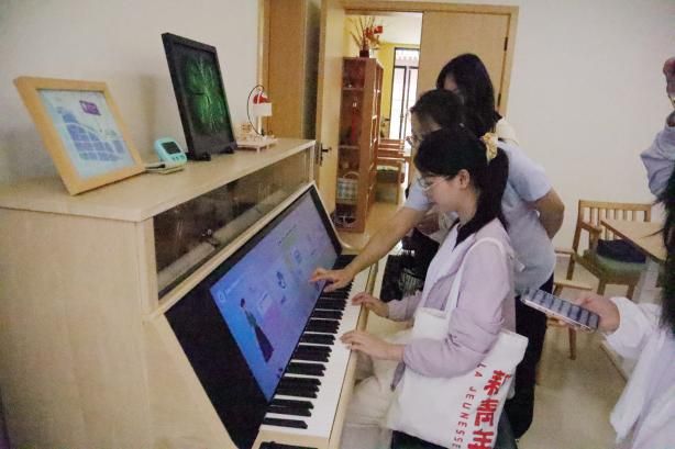 实践第二站——长宁区北新泾街道综合为老服务中心——爱馨苑。期间,团队成员主要考察了服务中心适老化改造的智能家居样板间,亲身体验如智慧厨房、智能钢琴学习机、智能身体数据检测仪、智能护理床等智能设备,实地感悟北新泾街道智能适老化服务的成效。团队成员与工作人员及社区老年人代表开展座谈会,就智能适老化设备的应用、特色项目推广及老年人满意度等内容展开深入交流。