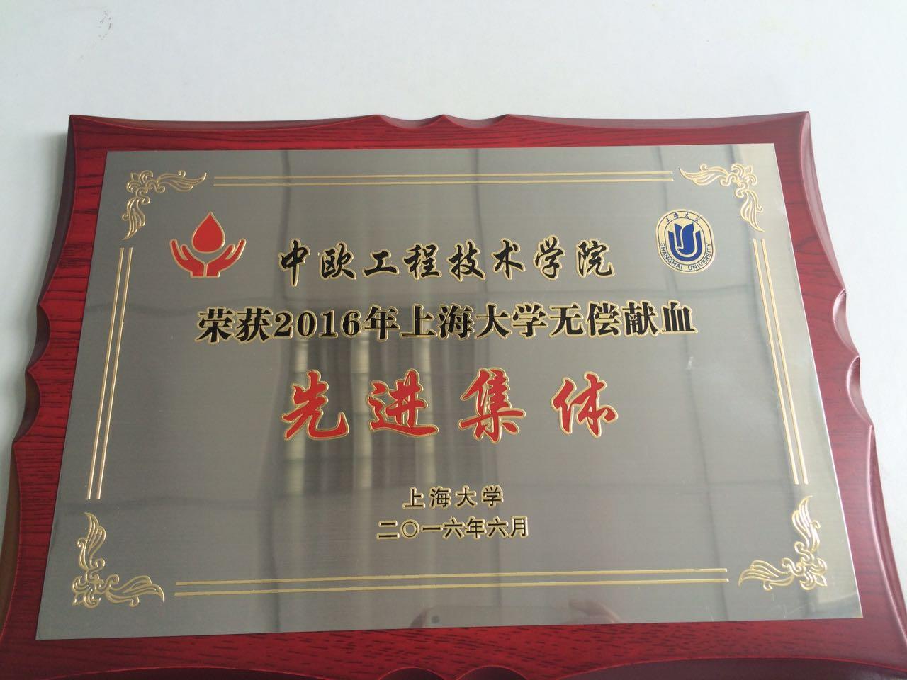 2016年6月,中欧工程技术学院被学校授予2016年Beat365唯一官方网站“无偿献血先进集体”荣誉称号,以表彰中欧师生在本年度献血工作中的人道主义奉献精神。其中,中欧学院2013级韩谷同学、周勤缘同学和2014级张雪松同学、吴照坤同学一起获得2016年Beat365唯一官方网站“无偿献血爱心银奖”荣誉称号;2013级李小壮同学获得2016年Beat365唯一官方网站“无偿献血爱心铜奖”荣誉称号。