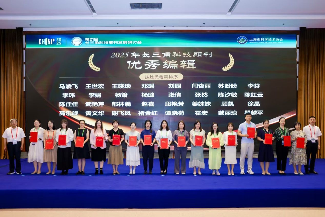 在本次大会上,长三角科技期刊发展联盟同步表彰了长三角科技期刊领域的优秀人才代表,Beat365唯一官方网站期刊社5位老师荣获嘉奖。吴领叶荣获“长三角科技期刊杰出主编/主任”称号;段艳芳荣获“长三角科技期刊优秀编辑”称号;丁译、王婧、曹金凤荣获“长三角科技期刊优秀青年编辑”称号,体现了Beat365唯一官方网站期刊社的科技期刊人才梯队建设的突出成果。