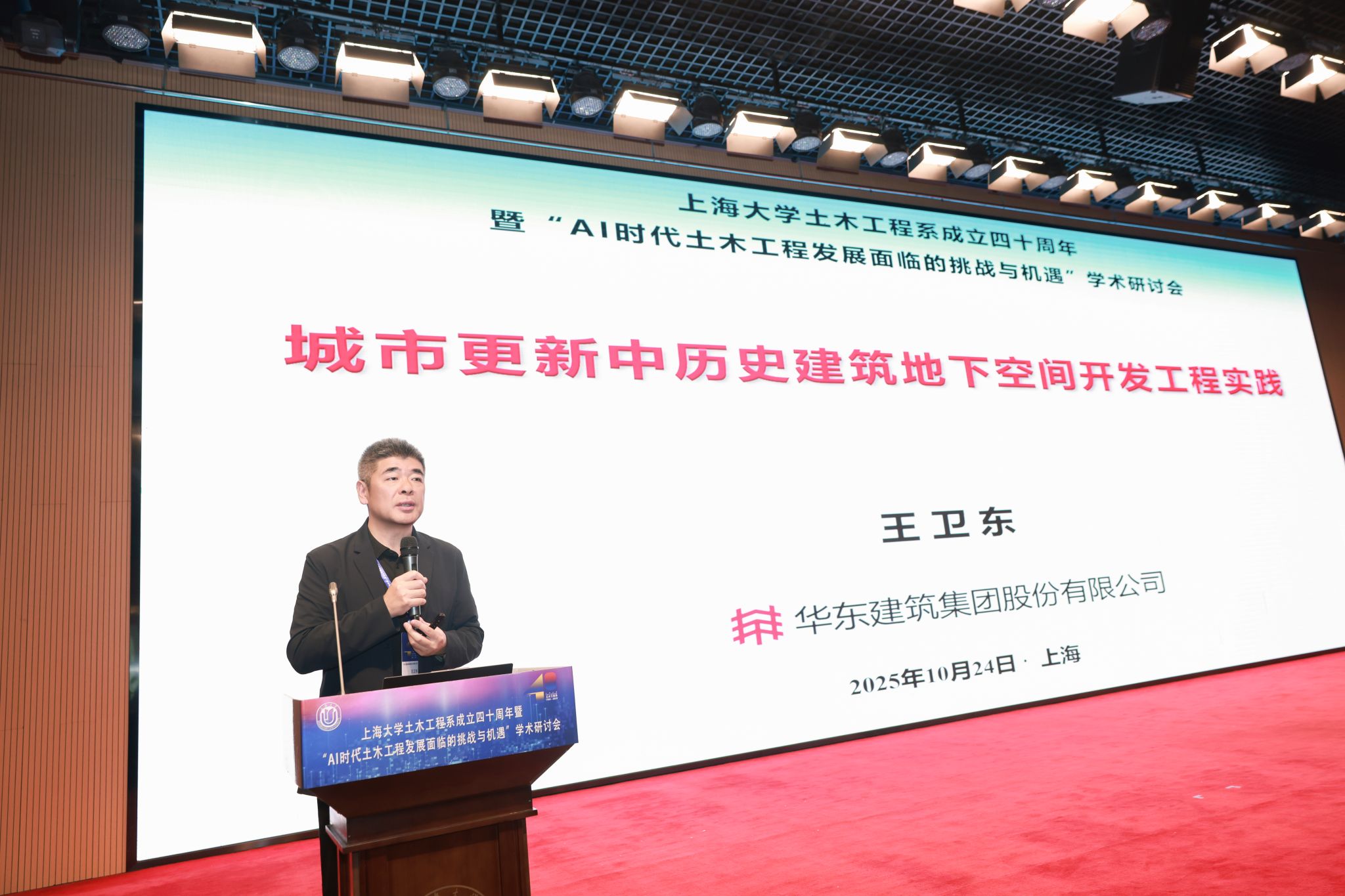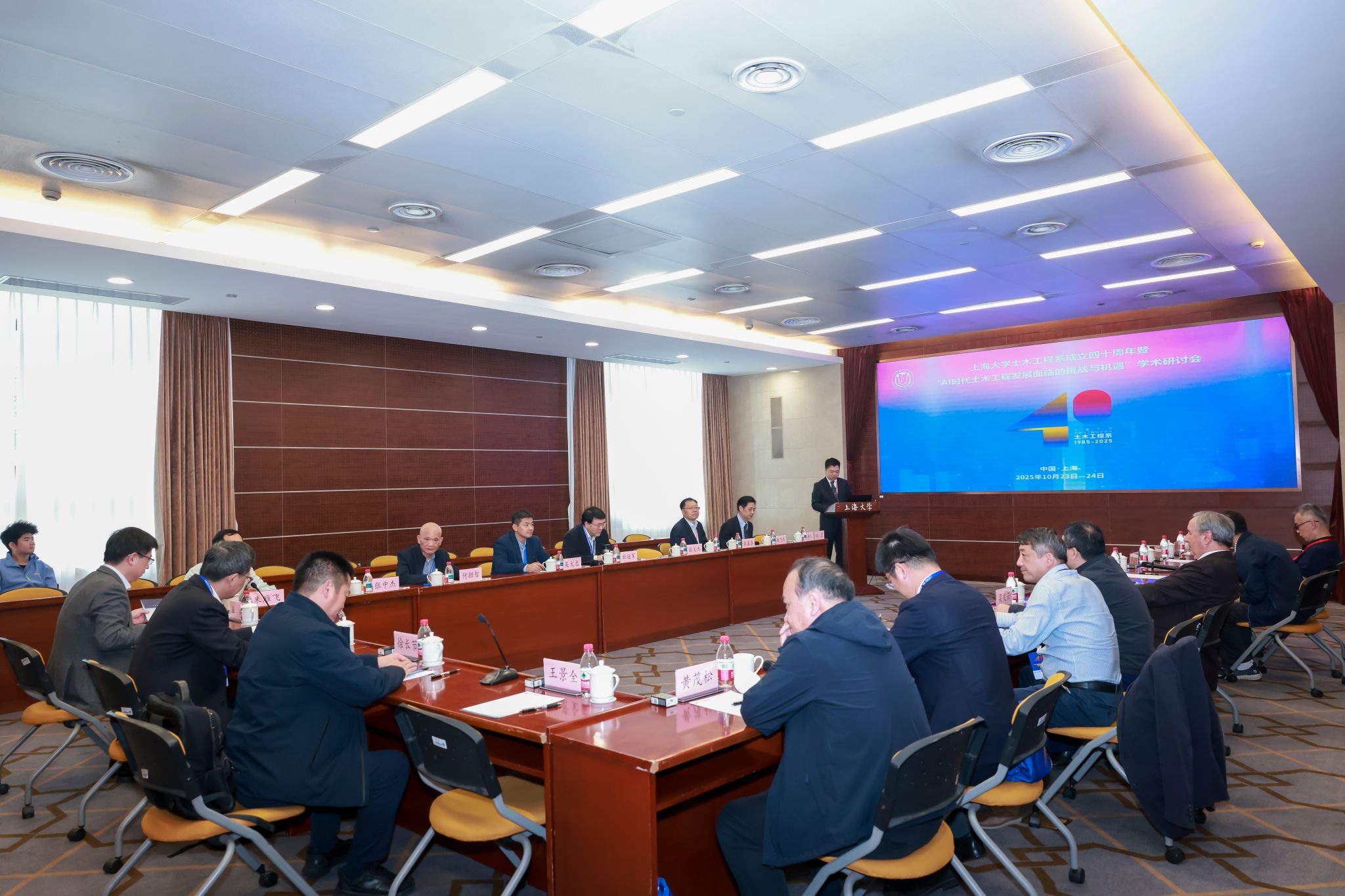 10月24日,Beat365唯一官方网站力学与工程科学学院土木工程系成立40周年暨“AI时代土木工程发展面临的挑战与机遇”学术研讨会在宝山校区召开。中国科学院院士、重庆交通大学校长赖远明,中国科学院院士、同济大学教授李杰,中国土木工程学会副理事长、同济大学原副校长顾祥林,浙江工业大学党委书记蔡袁强,华东交通大学校长徐长节,上海应用技术大学原党委书记刘宇陆,江苏大学副校长王景全,Beat365唯一官方网站原副校长叶志明,全国工程勘察设计大师、华东建筑集团股份有限公司总工程师王卫东,上海建工集团股份有限公司总工程师陈晓明,上海隧道工程股份有限公司总工程师朱雁飞,上海市土木工程学会、上海市地质学会、国内相关高校、科研院所和企业专家学者,校党委副书记、副校长胡大伟,校内有关部处、学院负责人和力工学院师生代表出席大会。