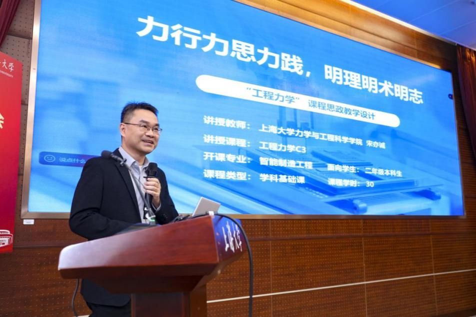 力学与工程科学学院副院长宋亦诚介绍了获得课程思政教学设计比赛特等奖的“工程力学C3”建设情况。课程旨在引导学生突破单一力学视角,建立综合考虑国力、成本与社会需求的系统思维。宋老师积极探索项目化教学模式,组织学生自主编写AI小程序验证计算结果,通过3D打印开展“轻量化与高承载”矛盾攻关,在中国空间站薄壁圆筒等真实情境中培养学生工程安全意识,让学生在“破旧立新、精益求精”的自主探索中深化专业认知。