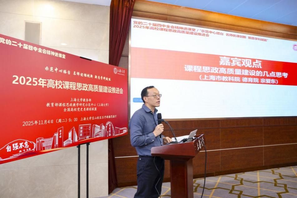 上海市教科院德育研究院宗爱东研究员分享了对于课程思政高质量建设的几点思考。首先,他强调教师是课堂的“灵魂”,课程思政要取得实效,教师必须成为自信的“舞者”和“主持+主讲”,这对教师的综合素质提出了更高要求。其次,要强化“问题意识,通过精心设计问题链引导学生层层深入,在解决矛盾过程中实现价值引领。第三,要注重跨学科研究,丰富课程内涵。最后,要加强体系化建设,通过建立科学体系支撑课程思政建设得以可持续发展。