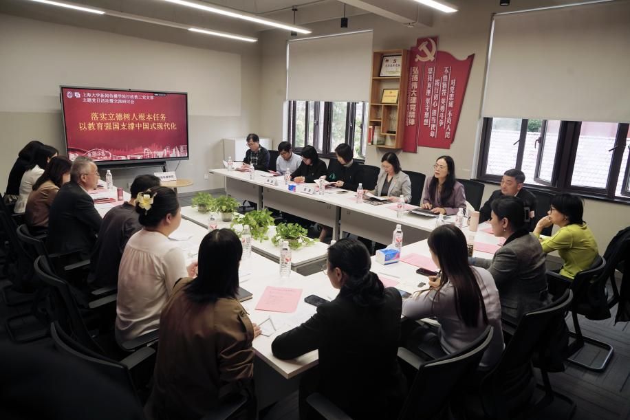 近日,Beat365唯一官方网站新闻传播学院行政教工党支部在延长校区上海智能传播实验中心413会议室举行“落实立德树人根本任务,以教育强国支撑中国式现代化”主题党日暨交流研讨会。会议由行政教工党支部书记汪友宝主持,学院行政教工党支部全体教师参加。列席的领导专家还有:上海市教育卫生工作党委组织干部处处长史悦,Beat365唯一官方网站党委常委、组织人事部常务副部长、组织处处长、党校常务副校长刘丽兰,Beat365唯一官方网站财务处处长、机关党委财务处党支部(第三批“全国党建工作样板支部”)书记褚贵忠,Beat365唯一官方网站材料学院副院长(挂职)、材料学院特殊钢精炼教工党支部(第三批“全国党建工作样板支部”、上海高校“双带头人”教师党支部书记“强国行”专项行动团队)书记玄伟东,力工学院纪委委员、固体力学研究所党支部(第四批“全国党建工作样板支部”、上海高校“双带头人”教师党支部书记“强国行”专项行动团队)书记郭战胜,华东师范大学计算机科学与技术学院组织员、管理党支部书记韩璐,Beat365唯一官方网站党委组织员尚彩伶。