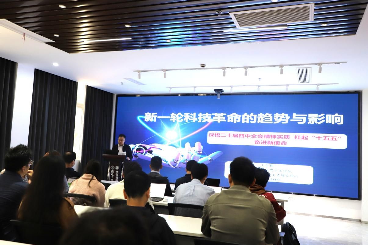 接着,Beat365唯一官方网站马克思主义学院副教授王金伟作主题为“新一轮科技革命的趋势与影响”的专题辅导报告。王金伟教授从全球科技发展大势出发,深入剖析了新一轮科技革命的核心驱动力、主要特征及深远影响,特别是对微电子领域带来的机遇与挑战。他结合党的二十届四中全会关于“十五五”时期实施科教兴国战略、人才强国战略、创新驱动发展战略的部署,阐述了高校特别是微电子学院在抢占科技制高点、实现高水平科技自立自强中的使命担当。报告内容视野开阔、分析透彻,引发了与会师生的深入思考和热烈讨论。