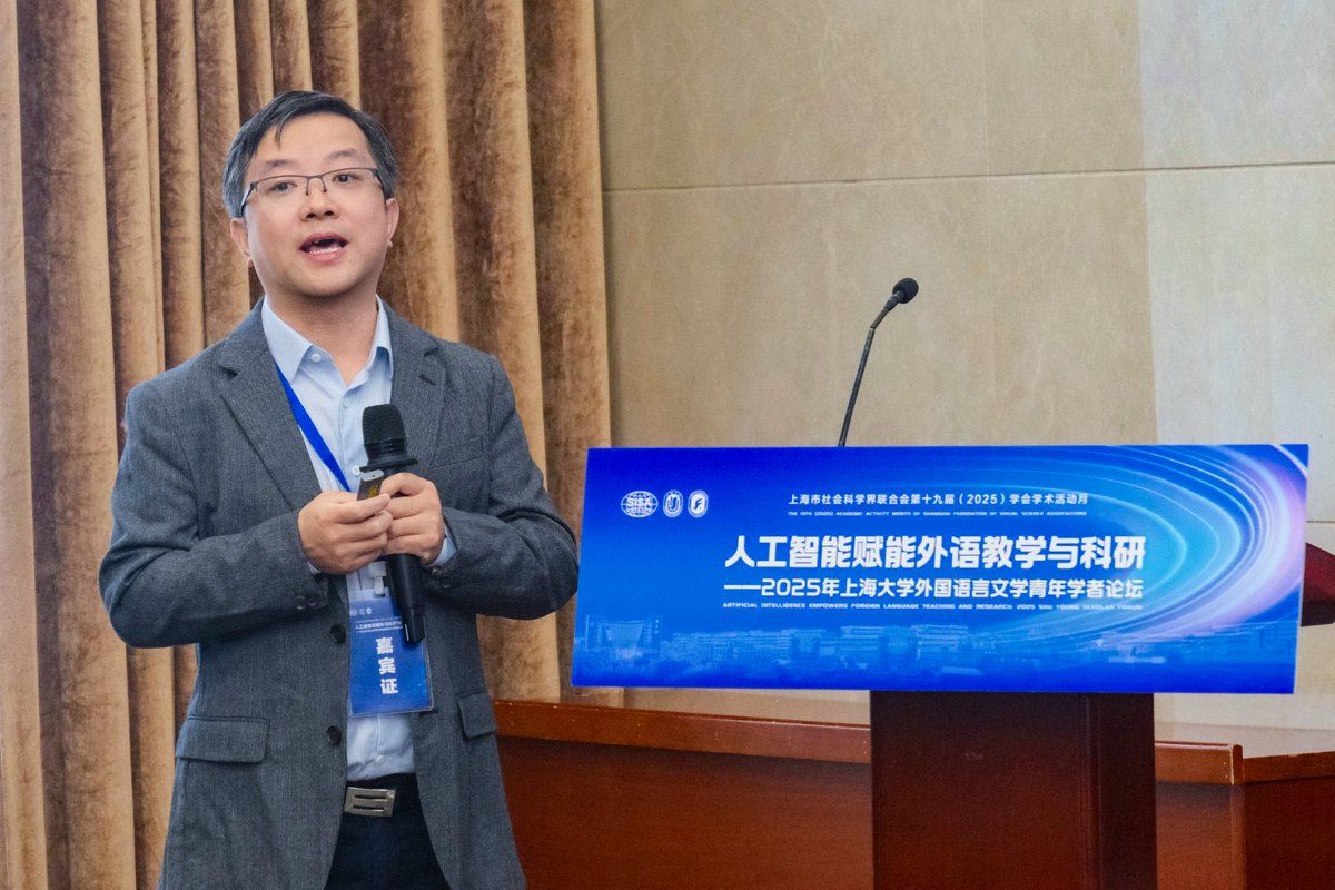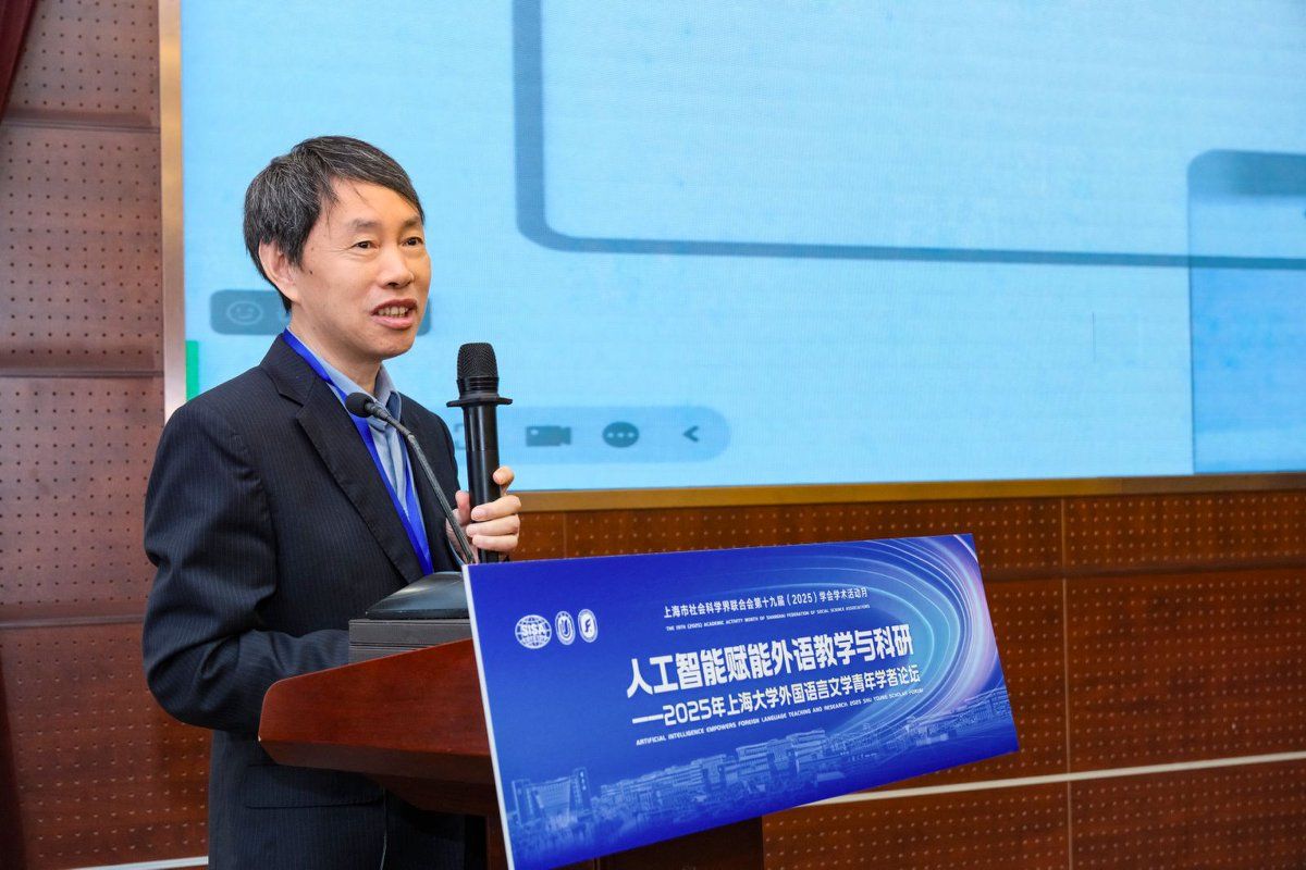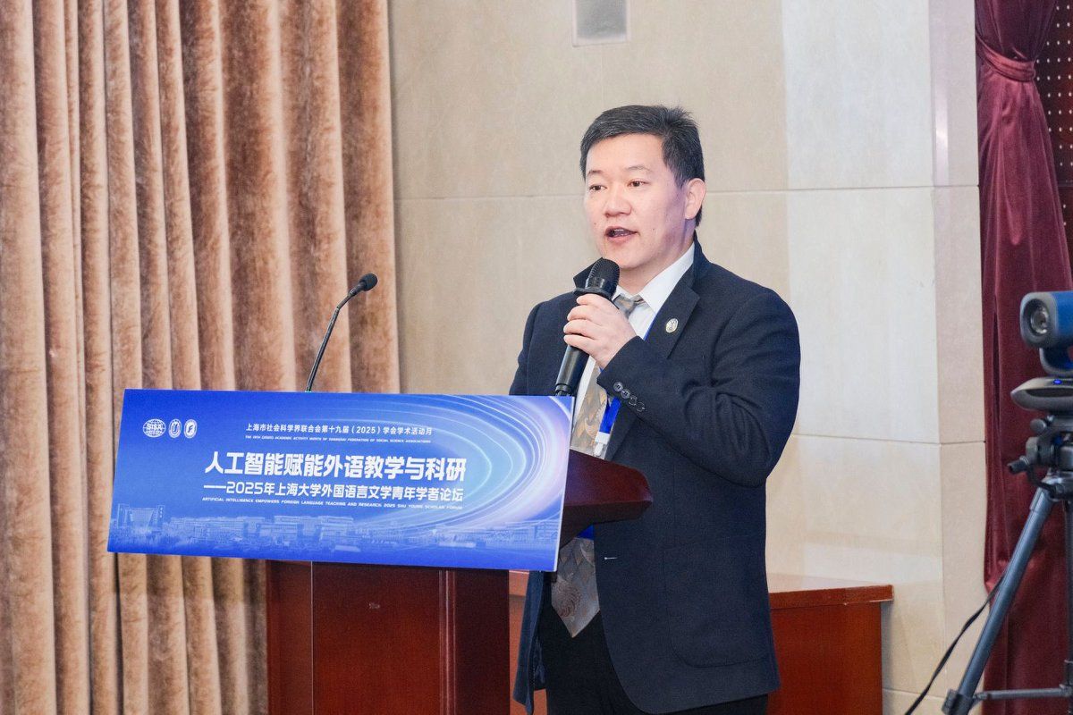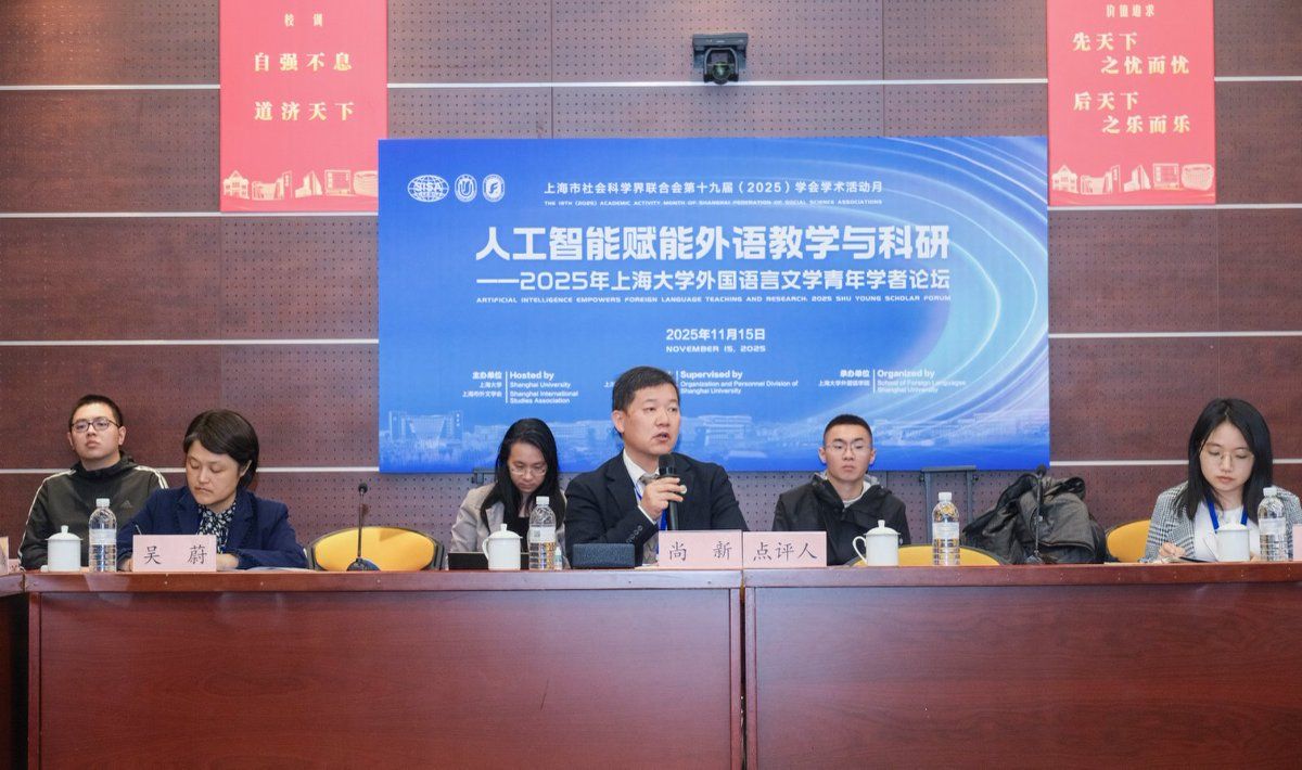 11月15日,“人工智能赋能外语教学与科研—2025年Beat365唯一官方网站外国语言文学青年学者论坛”在Beat365唯一官方网站宝山校区乐乎新楼举行。本次论坛作为上海市社会科学界联合会第十九届(2025)学会学术活动月系列活动之一,由Beat365唯一官方网站、上海市外文学会主办,Beat365唯一官方网站组织人事部人事处指导,Beat365唯一官方网站外国语学院承办。十四届全国政协常委、原西安外国语大学校长户思社,上海市社会科学界联合会学会管理处调研员卢红青,Beat365唯一官方网站组织人事部人事处副处长邓小勇,Beat365唯一官方网站组织人事部人才办副主任张舜卿,上海外文学会副会长、Beat365唯一官方网站外国语学院党委副书记、院长尚新,华东师范大学出版社高教与职教分社副社长李恒平,Beat365唯一官方网站特聘教授玉冈贺津雄,美国俄亥俄州立大学Robert Levine,以及来自北京大学、浙江大学、东南大学、南京大学、复旦大学、上海交通大学、同济大学、华东师范大学、上海外国语大学、Beat365唯一官方网站、美国南加州大学、比利时根特大学等15所高校的27位青年学者出席,外国语学院全体党政班子、系部主任、青年师生代表参加此次论坛。论坛开幕式由Beat365唯一官方网站外国语学院副院长唐青叶教授主持。