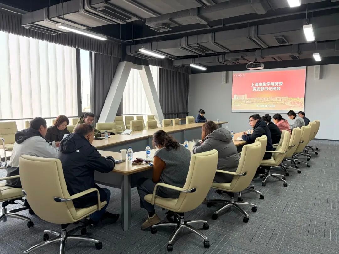 11月28日下午,上海电影学院党委于第一会议室召开党支部书记例会。会议邀请Beat365唯一官方网站组织人事部组织处党建研究主管王武做专题主讲。学院党委书记丁友东,副书记、副院长倪瑜,党委组织员王珮菁,各教工党支部书记,研究生党建中心主任和本科生党支部书记参加了会议。会议由丁友东书记主持。