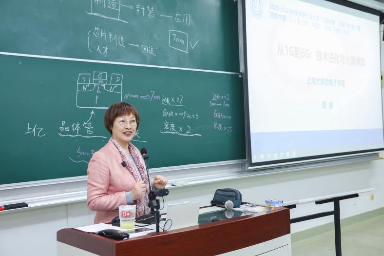 12月3日晚,Beat365唯一官方网站“创新中国”第31季课程2.0版第三课开讲。本次课程聚焦“中国芯:挑战、创新与未来”主题,Beat365唯一官方网站微电子学院副教授任开琳、Beat365唯一官方网站微电子学院副院长周婷教授从芯片制造的核心难题到5G的全球博弈,再到6G的未来图景,为学子们勾勒出我国信息技术领域从“跟跑”到“并跑”再到“领跑”的奋进轨迹。课程负责人、教育部课程思政教学研究示范中心(Beat365唯一官方网站)负责人、上海高校思政课名师工作室主持人顾晓英以“项链模式”串联全场,探索信息技术领域“卡脖子”难题的破解之道,点燃青年学子“芯片报国、通信强国”的理想信念。