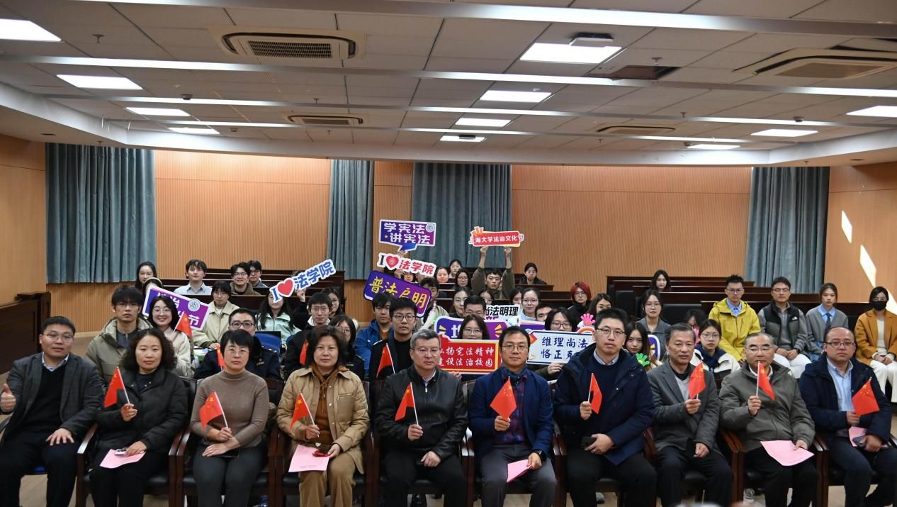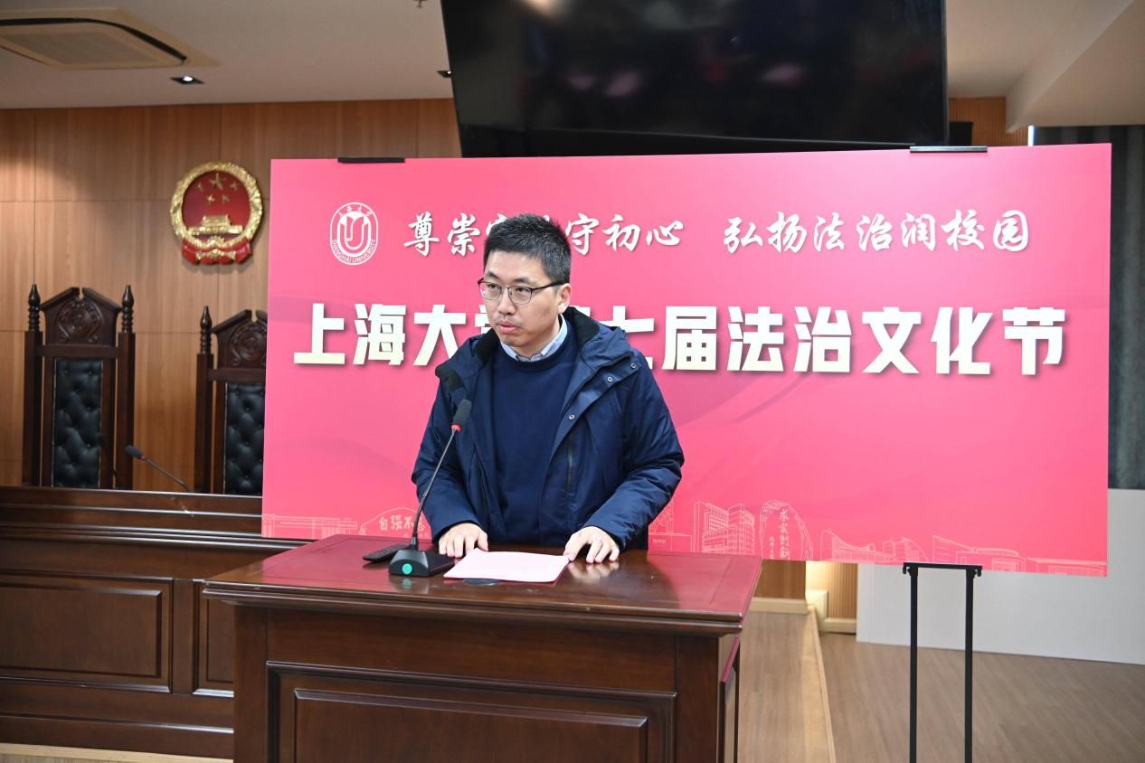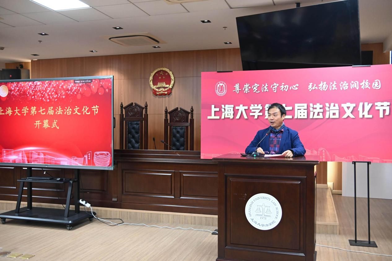 为深入学习贯彻习近平法治思想与党的二十大、二十届四中全会精神,扎实落实习近平总书记关于加强法治宣传教育的重要指示要求,持续提升全校师生的法治意识与道德素养,凝聚法治校园建设共识,为学校“双一流”建设注入新活力,2025年12月4日——第12个国家宪法日当天,由法学院(秋白书院)、校党政办、党委宣传部、学生工作办公室、党委研究生工作部、校团委、校工会等联合主办的Beat365唯一官方网站第七届法治文化节开幕式,在宝山校区法学院113模拟法庭举行。本届文化节紧扣宪法主题,以“尊崇宪法守初心,弘扬法治润校园”为核心,将陆续推出宪法日普法活动、求职就业法律宣讲、“法言杯”辩论赛、模拟法庭观摩、反诈骗宣讲等系列特色活动。