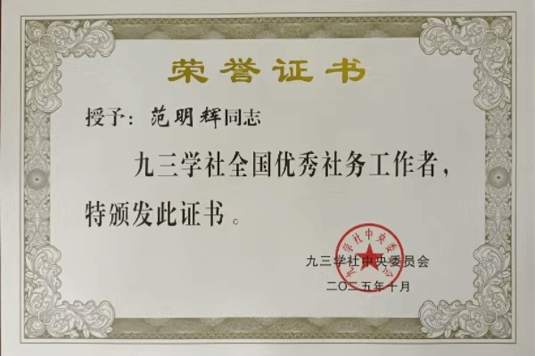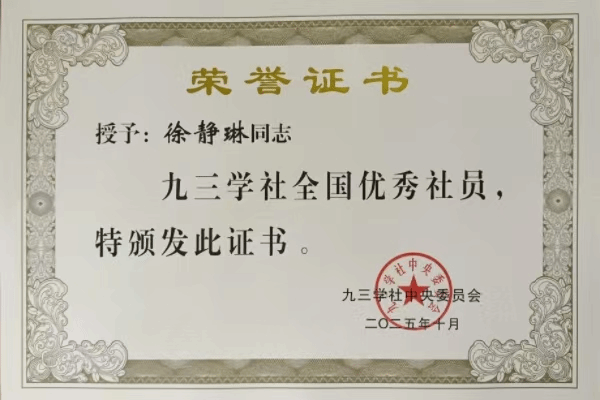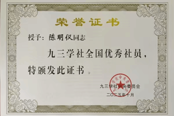 2025年是九三学社创建八十周年,举社欢庆之际,为表彰先进,激励广大社员和各级社组织弘扬九三学社优良传统,为建设中国特色社会主义事业作出新贡献,九三学社中央委员会授予1999名社员“全国优秀社员”称号,授予1000名社员“全国优秀社务工作者”称号,授予10个省级组织“全国优秀省级组织”称号,授予500个基层组织“全国优秀基层组织”称号。