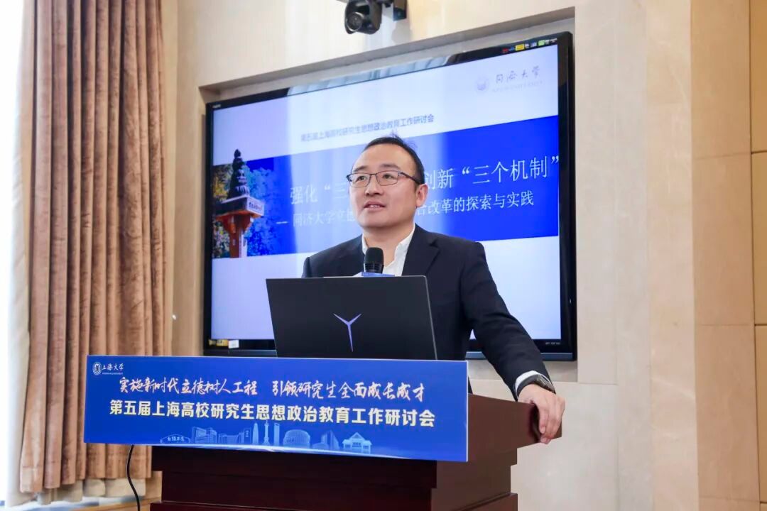 同济大学党委学生工作部(研究生工作部)部长许秀锋,以《强化“三个注重”创新“三个机制”——同济大学立德树人机制综合改革的探索与实践》为题作分享。他从着重构建思想引领、教学协同、数智赋能三大机制等方面,介绍了同济大学在研究生思政教育机制改革中的整体思路、关键举措与实践成效。