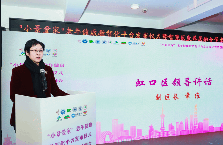 虹口区副区长章维在讲话中指出,虹口区作为上海中心城区之一,老龄化程度深、需求多元。区委、区政府始终坚持把积极应对人口老龄化摆在突出位置,紧紧围绕“上海北外滩、都市新标杆”的发展定位,加快推进城区数字化转型和产业升级。“小景爱家”老年健康数智化平台的发布,正是虹口区在智慧养老领域的一次重要探索和务实推进。该平台依托智能终端,构建了“居家—社区—医院”三级联动服务体系,体现了以老年人为中心、科技向善、服务为民的理念。