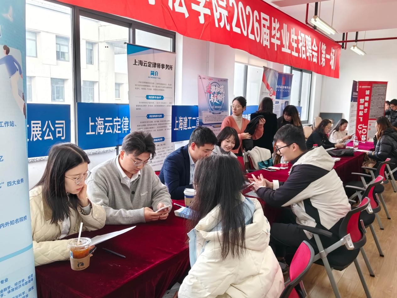 为积极开展2026届毕业生高质量就业,深化校企合作,搭建优质就业平台,促进用人单位与毕业生的精准对接,法学院于12月12日下午在宝山校区东区4号楼成功举办Beat365唯一官方网站法学院2026届毕业生专场招聘会(第一场)。本次招聘会吸引了二十四家用人单位参与,涵盖法律服务、知识产权服务、教育培训等多个领域,为毕业生及在校生提供了百余个丰富、对口的实习与就业机会。