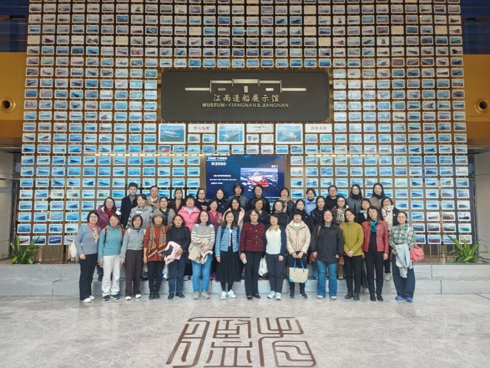 下午,女教授们走进江南造船集团。在展览厅和历史陈列馆,女教授们沿着时间轴线,回顾了中国船舶工业的跨越式发展历程。看到一艘艘由我国自主研发建造的高技术船舶模型,特别是了解到江南造船在新时代航母、液化天然气船、大型集装箱船等船型上取得的一系列突破时,大家深受鼓舞。
