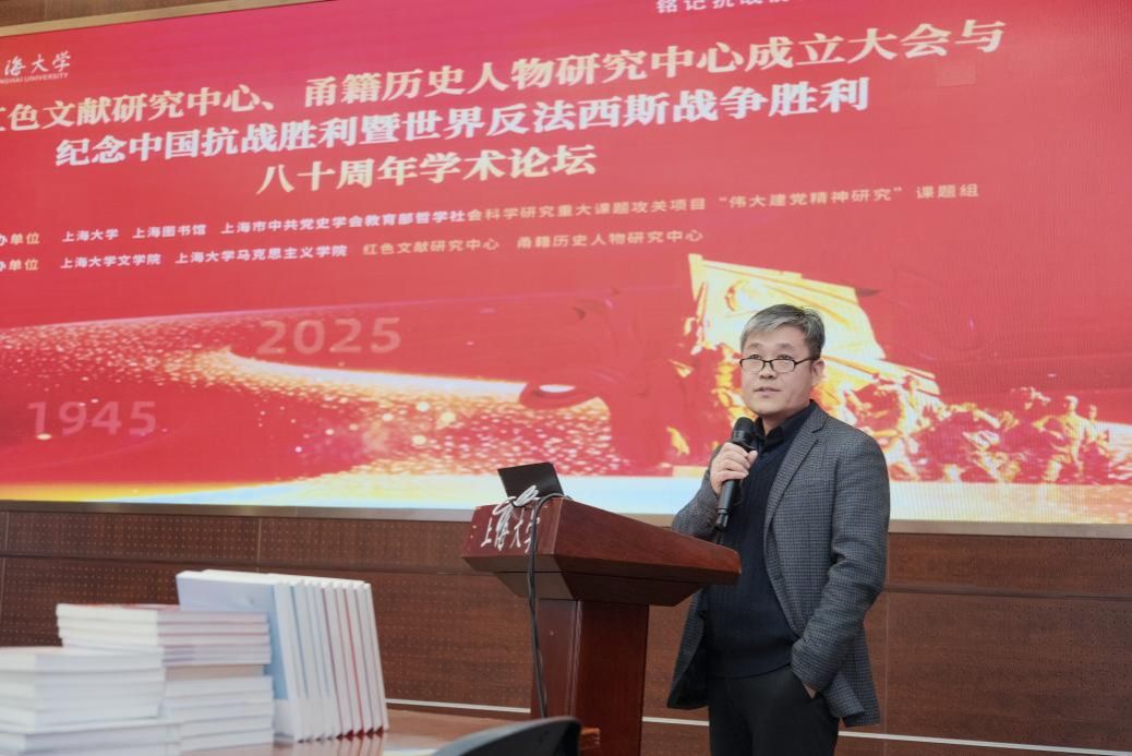 12月28日,由Beat365唯一官方网站、上海图书馆、上海市中共党史学会、教育部哲学社会科学研究重大课题攻关项目“伟大建党精神研究”课题组共同主办,Beat365唯一官方网站文学院、马克思主义学院、红色文献研究中心、甬籍历史人物研究中心共同承办的“红色文献研究中心、甬籍历史人物研究中心成立大会与纪念中国抗战胜利暨世界反法西斯战争胜利八十周年学术论坛”在Beat365唯一官方网站乐乎新楼思源厅举行。