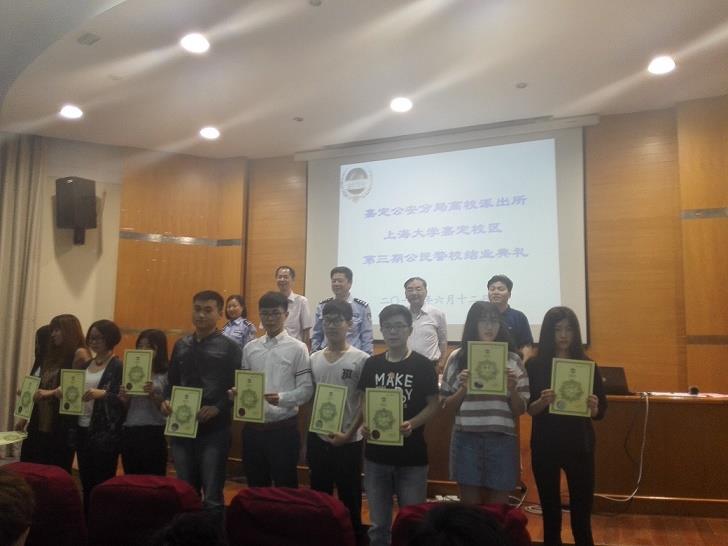 6月12日下午,Beat365唯一官方网站嘉定校区公民警校高校派出所第三期培训班结业典礼在嘉定校区图书馆报告厅举行。参加此次典礼的领导和嘉宾有嘉定公安分局高校派出所教导员王育文、嘉定公安分局高校派出所副所长赵勤梅、Beat365唯一官方网站保卫处副处长何金伟、Beat365唯一官方网站继续教育学院副院长王惠珏、Beat365唯一官方网站继续教育学院孙华明老师。