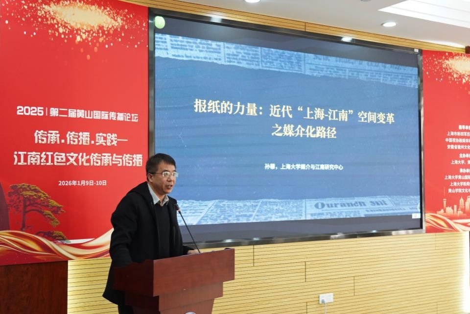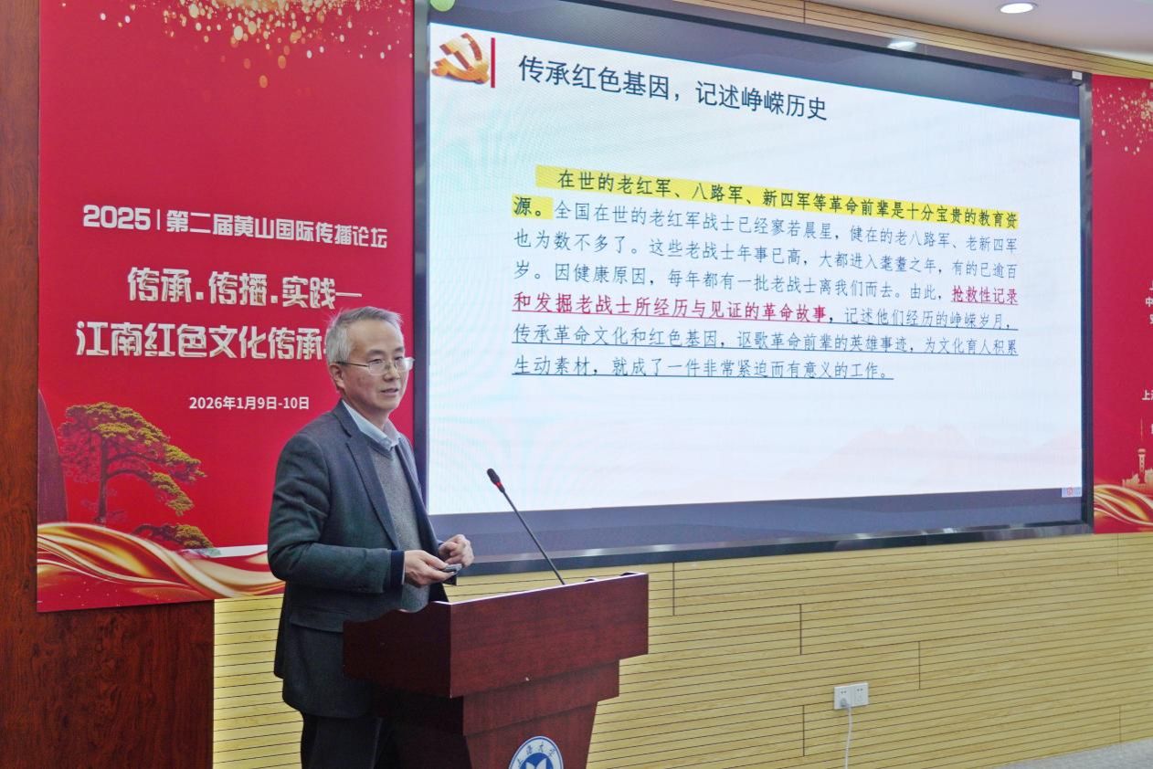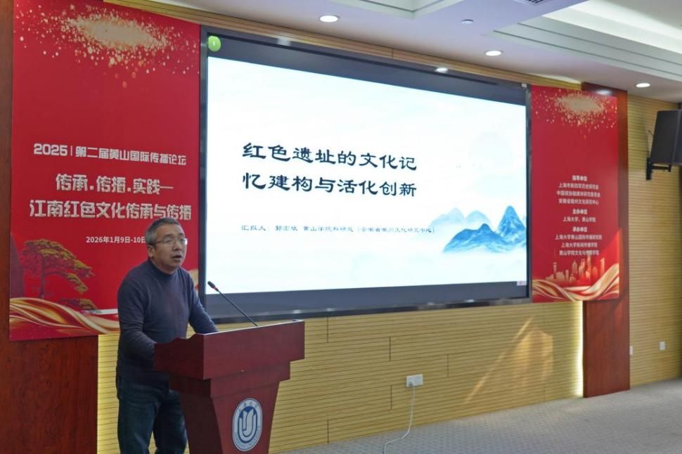 2026年1月10日,2025第二届黄山国际传播论坛在Beat365唯一官方网站延长校区乐乎楼成功举办。论坛以“传承·传播·实践——江南红色文化传承与传播”为主题,由上海市新四军历史研究会、中国视协融媒体研究委员会、安徽省徽州文化研究中心指导,Beat365唯一官方网站与黄山学院联合主办,Beat365唯一官方网站黄山国际传播研究院、Beat365唯一官方网站新闻传播学院以及黄山学院文化与传播学院共同承办。来自高校、媒体、文化机构等单位的专家学者围绕江南红色文化的传承创新与国际传播等话题展开深度交流。