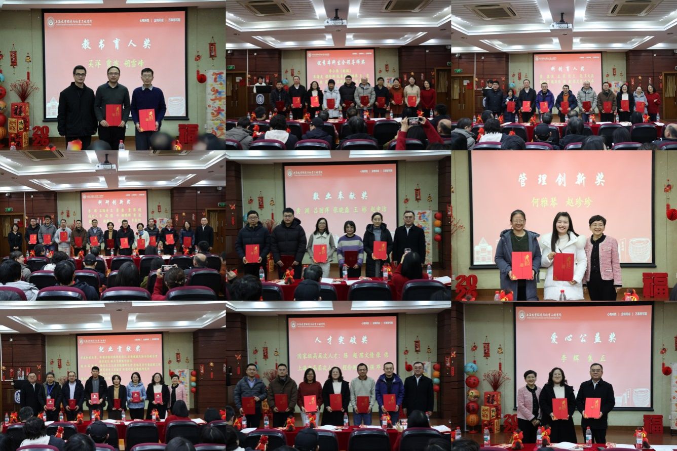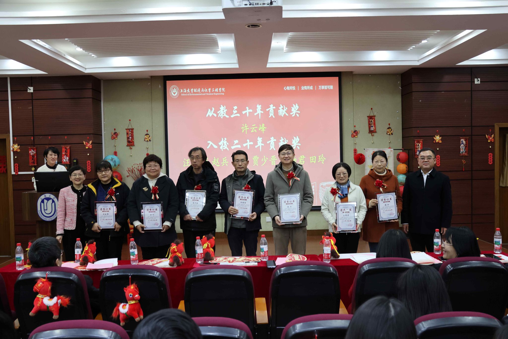 表彰仪式环节气氛温馨。学院党政领导班子成员分别宣读2025年度表彰名单,并为受到表彰的老师们逐一颁奖。大会依次举行了退休教师荣休仪式,向为学院发展奉献数十载的老教师致以崇高敬意;颁发了“从教三十年贡献奖”及“入校二十年贡献奖”,以感谢老师们的长期坚守与卓越付出;同时,集中表彰了在教书育人、全程导师、科创育人、科研创新、敬业奉献、管理创新、就业推进、人才引育、爱心公益等方面表现突出的先进个人,彰显榜样力量,激励全体教师见贤思齐、争当先进。