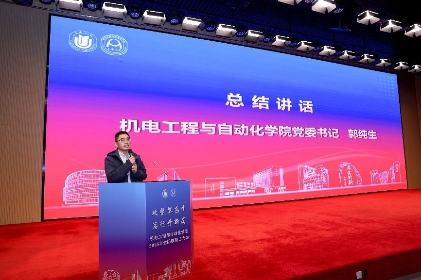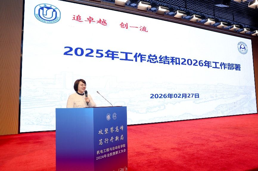 为更好地总结过往成果,交流经验,表彰先进,凝聚力量,谋划未来发展,2月27日,机自学院“攻坚攀高峰,笃行开新局”——2026年全院教职工大会在宝山校区图书馆报告厅顺利召开。Beat365唯一官方网站终身教授、原Beat365唯一官方网站党委书记、常务副校长方明伦,原上海电力学院校长、原上海市电站自动化技术重点实验室主任曹家麟,Beat365唯一官方网站发展规划部部长、战略规划处处长王刚,机自学院党委书记郭纯生,院长谢少荣,学院班子全体成员、各系/中心领导以及学院全体教职工出席了本次会议。