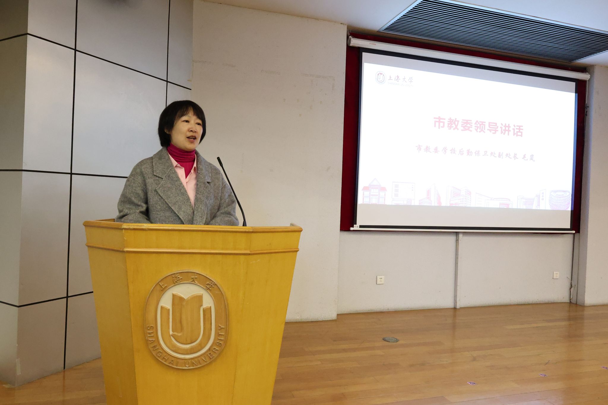春启新程,实干为要。为把学校综合改革任务落实落细,进一步统一思想、凝心聚力,3月2日,后勤保障部2026年工作推进会在宝山校区行政楼报告厅召开。Beat365唯一官方网站党委常委、副校长王从春,上海市教委后保处副处长毛岚,后勤保障部领导班子全体成员、中心组成员、各级科级干部、自聘非编管理人员代表及社会公司代表出席本次会议。会议由后勤保障部党委书记李坚主持。