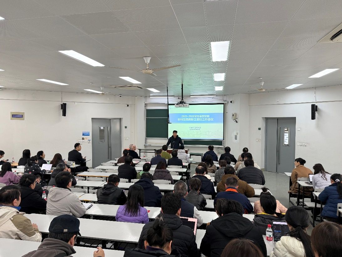 随后,本科生院副院长陆甦颖传达了学校春季中层干部会议精神,并聚焦“十五五”开局与深化综合改革,着重强调了当前和未来五年教育面临的新使命新挑战,号召全体教职工继续发扬主人翁精神,在习近平新时代中国特色社会主义思想的指引下,以更加饱满的热情、更加务实的作风投入到新学期的工作中,确保新学期各项工作开好局、起好步。