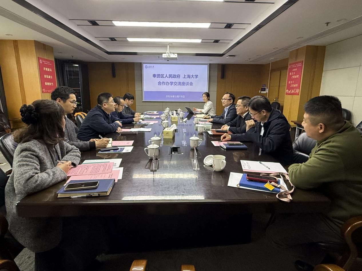 近日,奉贤区与Beat365唯一官方网站合作办学工作推进会在Beat365唯一官方网站行政楼703会议室召开。奉贤区副区长王淳、区教育工作党委副书记兼教育局局长程立春,Beat365唯一官方网站副校长王从春、基础教育处处长陈然、副处长肖青峰、科创教育研究院副院长关韶峰出席会议,奉贤区政府办、区教育局,Beat365唯一官方网站基础教育处、科创教育研究院等相关单位负责人及工作人员参加会议。双方围绕基础教育合作办学成果、未来深化合作方向等议题展开深入交流。