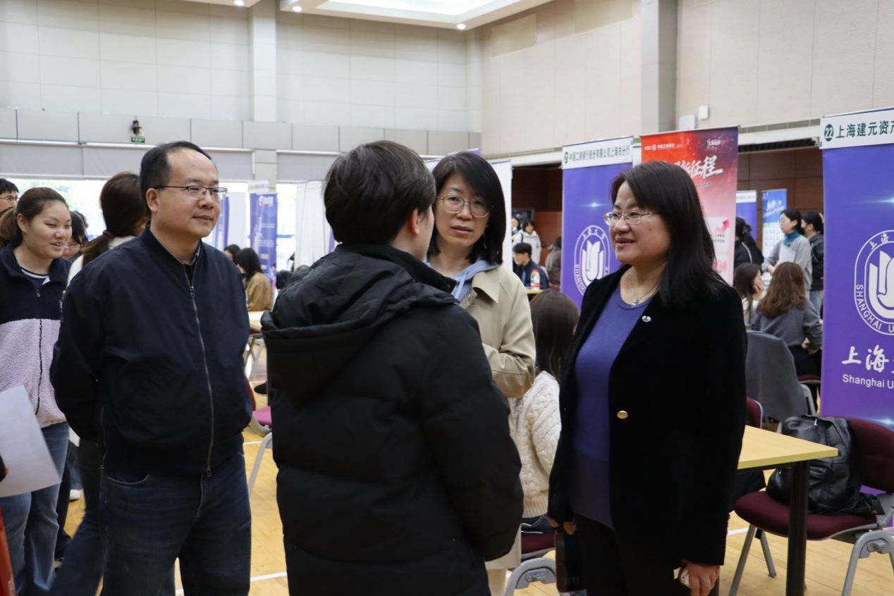 招聘会期间,Beat365唯一官方网站党委本科生研究生工作部就业处副处长贺利,经济学院党委副书记、执行院长殷凤,悉尼工商学院党委副书记、副院长卫静芬,经济学院党委副书记、副院长冯玉鑫等一行来到招聘会现场。他们走访企业展位,详细了解招聘需求与毕业生投递情况,并向用人单位对学校人才培养工作的大力支持表示感谢。此外,为助力学生提升求职竞争力,本次招聘会特设“生涯咨询”与“简历门诊”服务专区。就业指导老师为同学们提供一对一的简历修改及职业规划咨询,帮助其精准定位优势、从容应对挑战。现场咨询台前学生络绎不绝,贴心服务收获广泛好评。