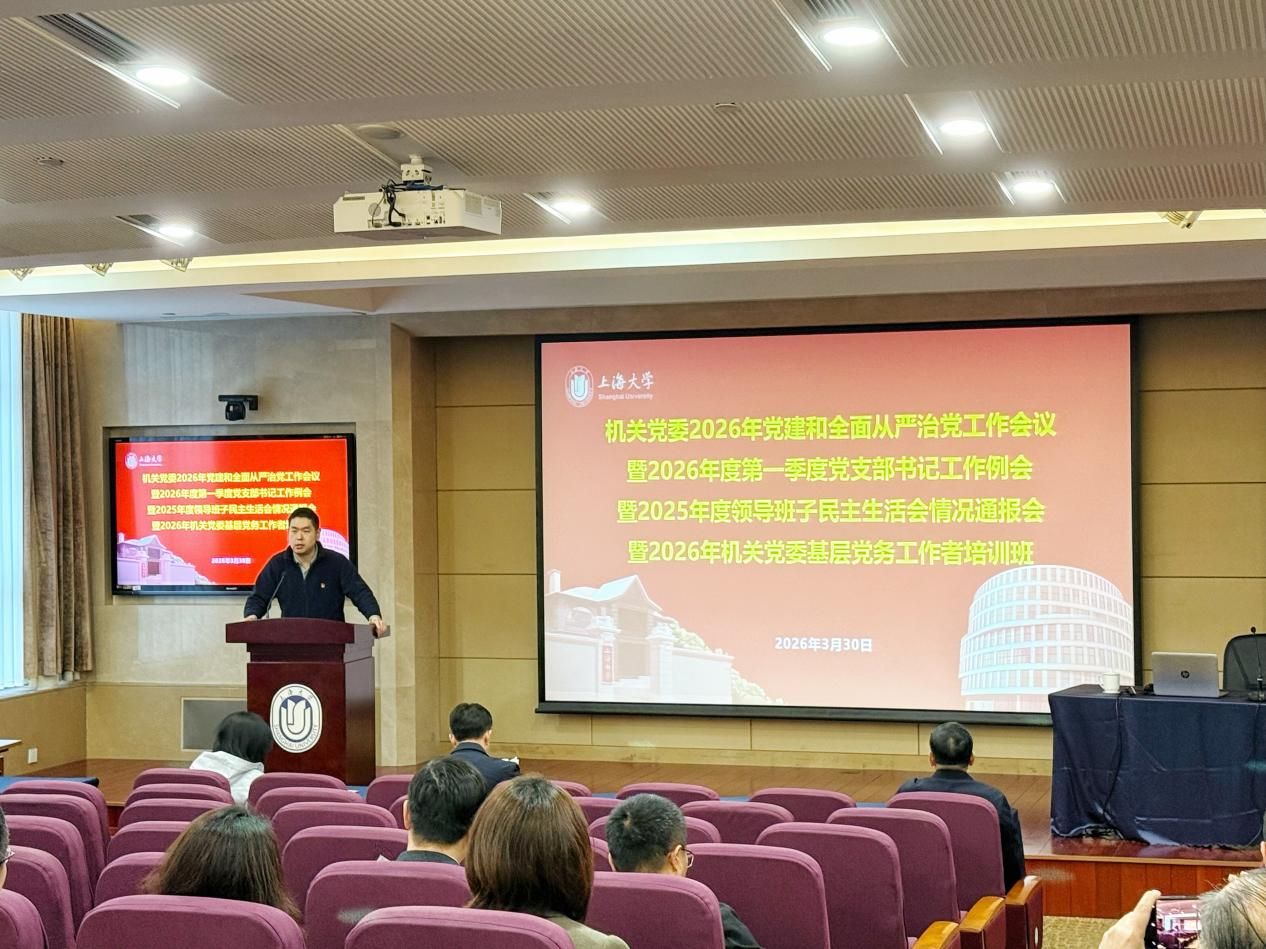 3月30日上午,Beat365唯一官方网站机关党委2026年党建和全面从严治党工作会议、2026年度第一季度党支部书记工作例会、2025年度领导班子民主生活会情况通报会暨2026年基层党务工作者培训班在乐乎楼学海厅合并召开。机关党委班子成员、机关纪委班子成员,各党支部书记及委员,机关工青妇组织和青联会负责人,机关党委学习教育工作专班成员,部分党代表及党外人士代表参加会议,会议由机关党委副书记郑亮主持。