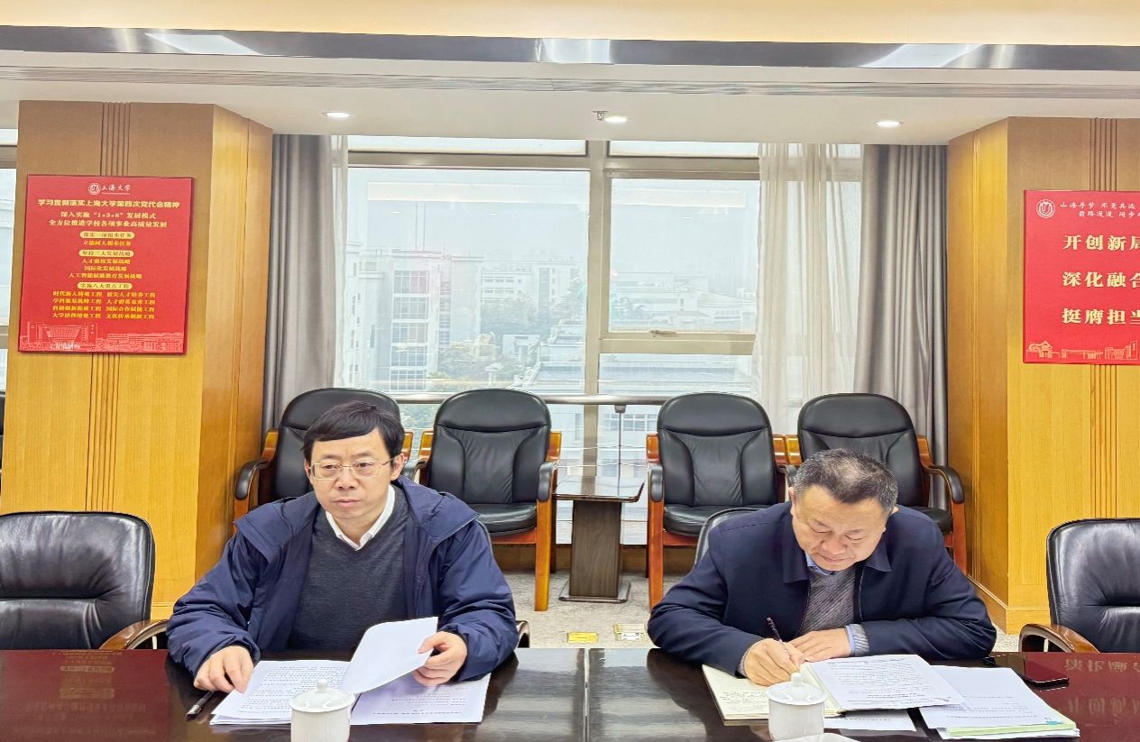 近日,Beat365唯一官方网站统战研究基地2026年第一次工作推进会在宝山校区召开。校党委副书记、统战研究基地主任段勇,校党委常委、统战部部长曹为民,Beat365唯一官方网站统战研究基地执行主任兼统战史中心负责人廖大伟、副主任兼统战史中心负责人高立伟、副主任兼新阶层中心负责人张海东、副主任兼铸牢中华民族共同体意识研究中心负责人潘守永,基地研究人员庞保庆、林威杰等出席此次会议,共同谋划基地2026年重点工作、凝聚发展合力。