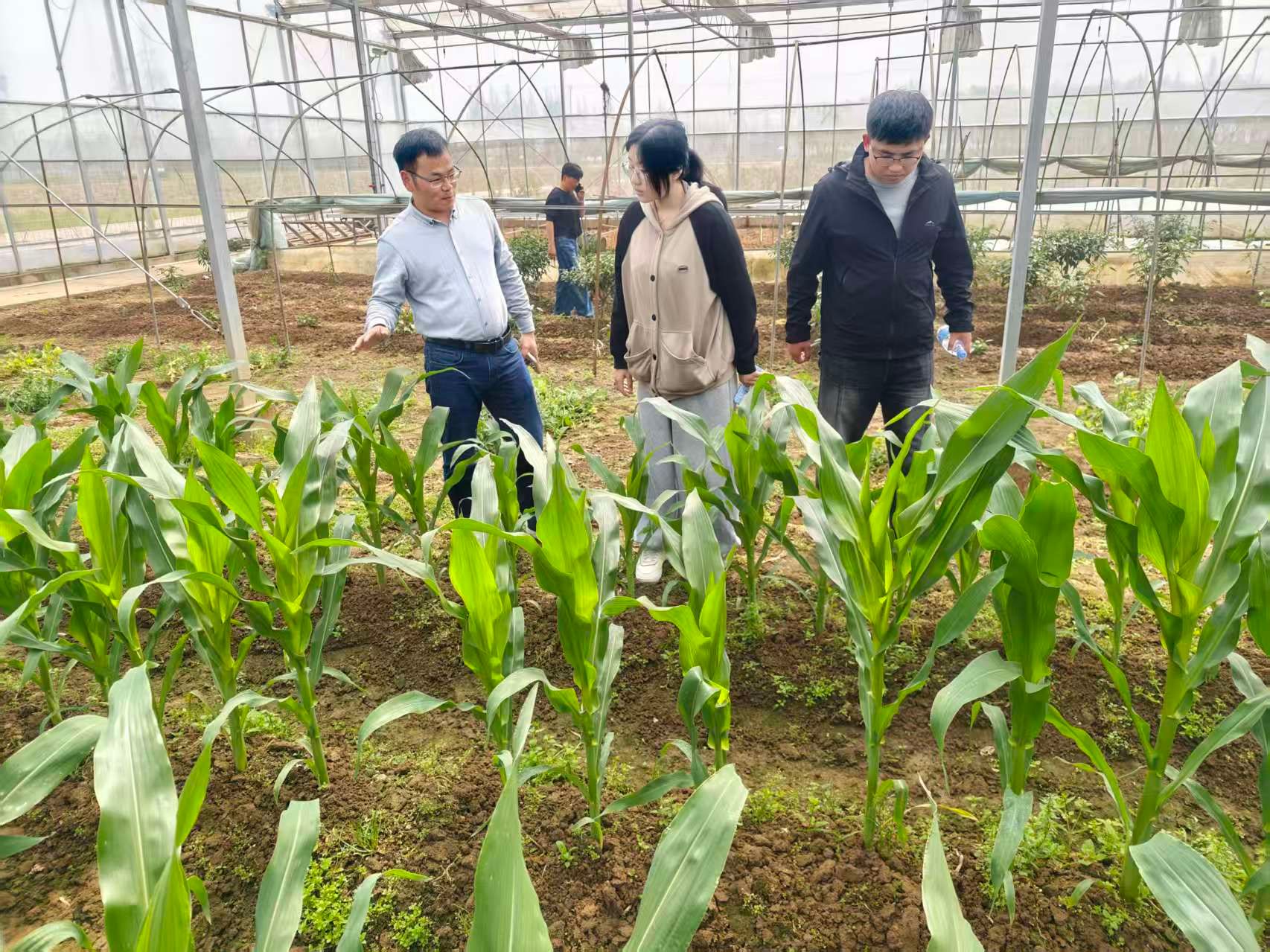 随后,团队深入华西村大型农业合作社,实地考察青沁贝源白山羊专业合作社与上海清澄果蔬专业合作社。刘腾轼副院长提出将“富铁玉米”科研成果与农户合作进行项目转化,通过该技术提高合作社的果蔬品质和产量,增强农产品的市场竞争力。胡雪峰教授结合教授农场经验,与农户探讨有机种植难题。他提出用微生物菌剂改良土壤、以有机肥抑制病虫害,降低化肥农药使用量,达成“减药减肥不减产”,助力农业降本增效、绿色转型。