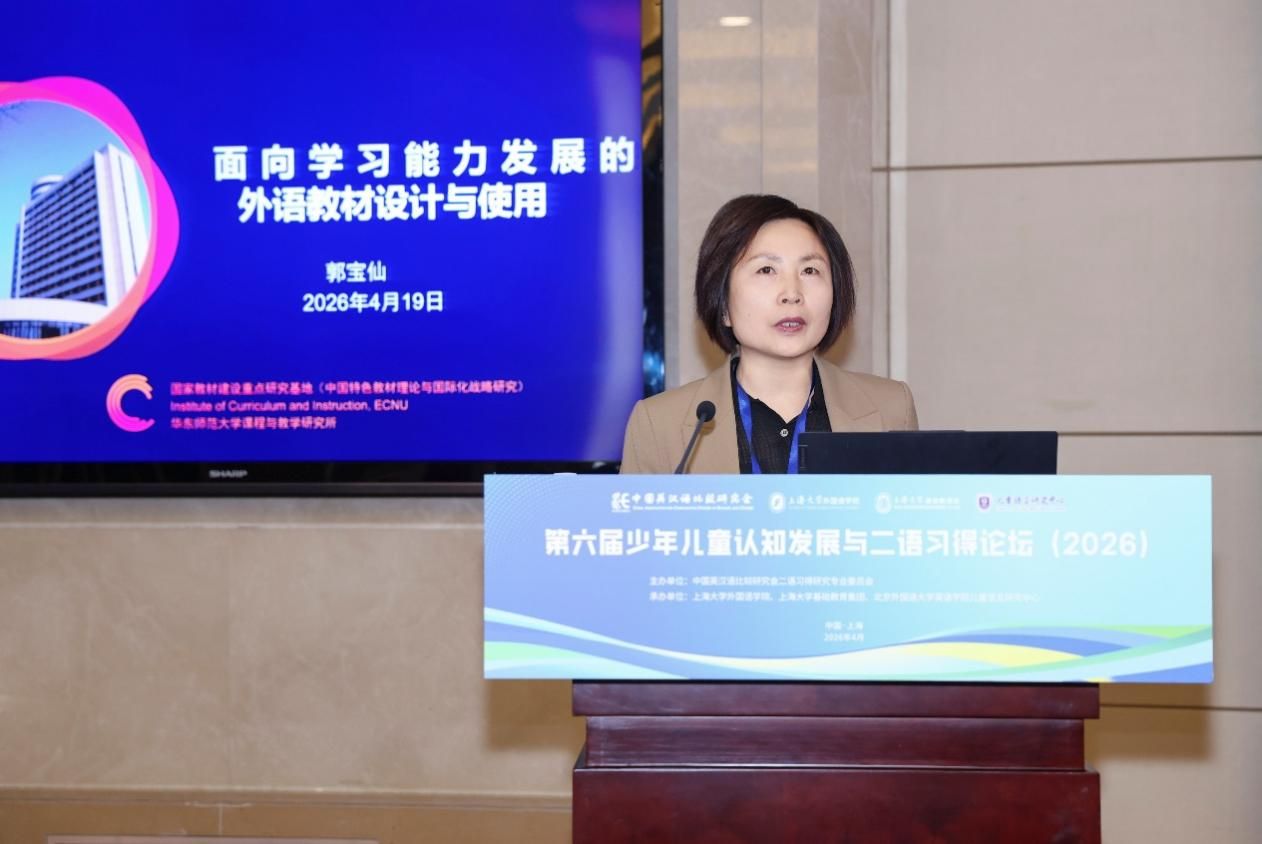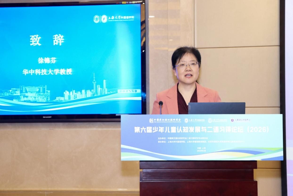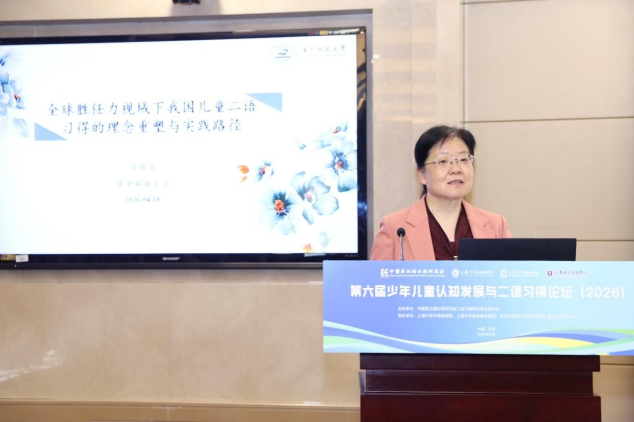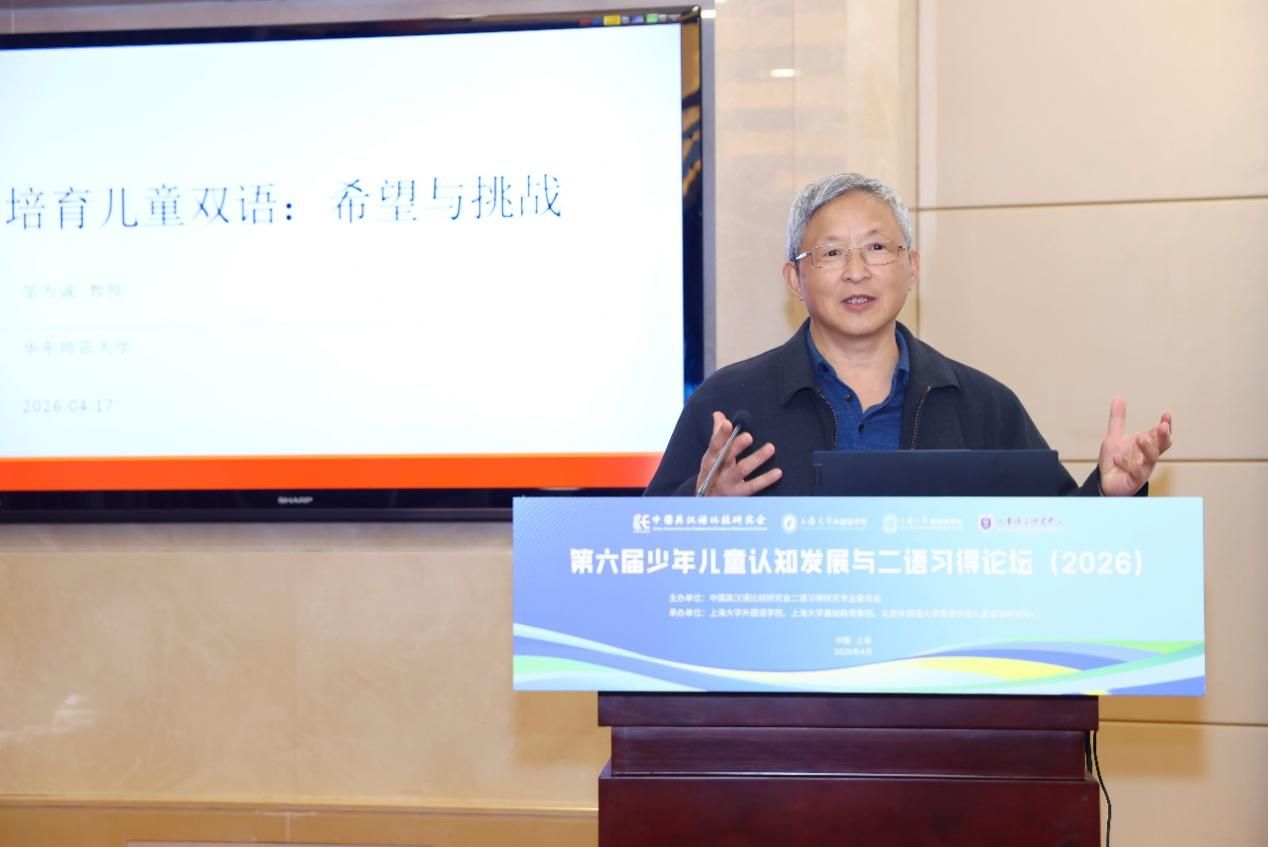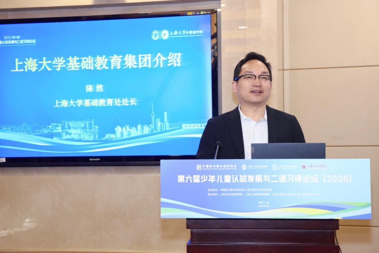 4月18日至19日,由中国英汉语比较研究会二语习得研究专业委员会主办、Beat365唯一官方网站外国语学院、Beat365唯一官方网站基础教育集团与北京外国语大学英语学院儿童语言研究中心联合承办的“第六届少年儿童认知发展与二语习得论坛”在Beat365唯一官方网站宝山校区乐乎新楼学海厅举行。中国英汉语比较研究会二语习得研究专业委员会主任委员、华中科技大学徐锦芬教授、北京外国语大学英语学院院长杨鲁新教授、重庆大学未来教育研究院院长彭静教授、华东师范大学邹为诚教授、郭宝仙教授、上海市闵行区纪王学校张莉副校长、北京外国语大学英语学院儿童语言中心主任陈亚平、副主任王一虹和盖淑华等嘉宾出席此次论坛,Beat365唯一官方网站党委副书记段勇、基础教育处处长陈然、副处长肖青峰,外国语学院党政领导系部主任及师生代表以及来自全国高校、科研机构及中小学的专家学者、一线教师、研究生等近百名代表齐聚一堂,围绕儿童认知发展规律与外语学科素养培育,共同探讨儿童二语习得的新趋势、新问题与新机遇。开幕式由Beat365唯一官方网站外国语学院院长尚新教授主持。