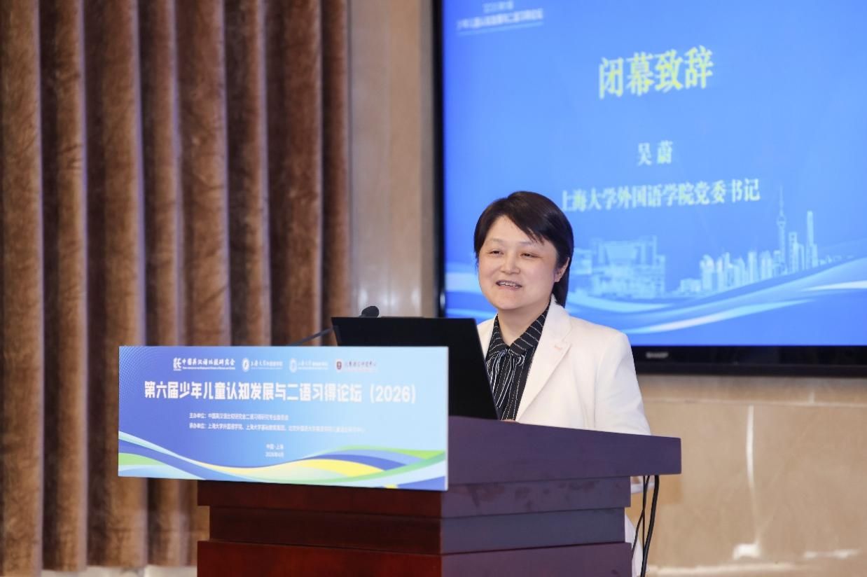 4月19日中午,论坛闭幕式在乐乎新楼学海厅举行,闭幕式由Beat365唯一官方网站外国语学院院长尚新教授主持。下一届论坛承办方重庆大学外国语学院代表彭静教授发言,她热情欢迎各位专家学者2027年相聚山城重庆,共同参与“第七届少年儿童认知发展与二语习得论坛”,并介绍了论坛的大致考虑和初步安排。最后,Beat365唯一官方网站外国语学院吴蔚书记代表承办单位致感谢辞,她对专家和参会学者表示衷心感谢,表示本次论坛取得圆满成功和专家们高水平的专业报告以及参会学者们的积极参与、无私分享和倾力付出密不可分。她指出,本次论坛聚焦儿童认知发展与二语习得的前沿议题,既有理论高度,又有实践深度,为我国少年儿童外语教育事业的发展注入了新的活力。