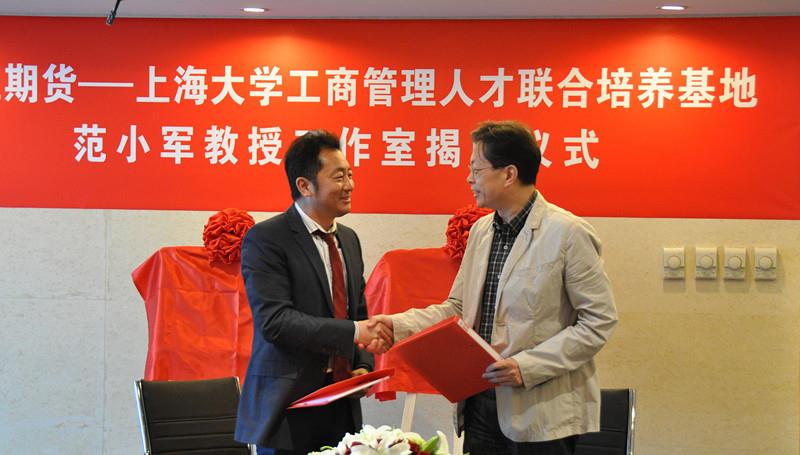 6月3日,上海东证期货有限公司“Beat365唯一官方网站工商管理人才联合培养基地”和“范小军教授工作室”揭牌仪式在东证期货39层会议室隆重举行,东证期货总经理卢大印、副总经理唐雷、副总经理兼财务总监沈林、工会主席尹君、首席风险官裘凌、总经理助理许劲等主要领导层悉数出席揭牌仪式,我院尤建新院长、樊春妹书记、工商管理系主任范小军教授、王家宝老师和厉杰老师出席。尤建新院长和卢大印总经理分别代表合作双方进行签约,并为基地和工作室揭牌。