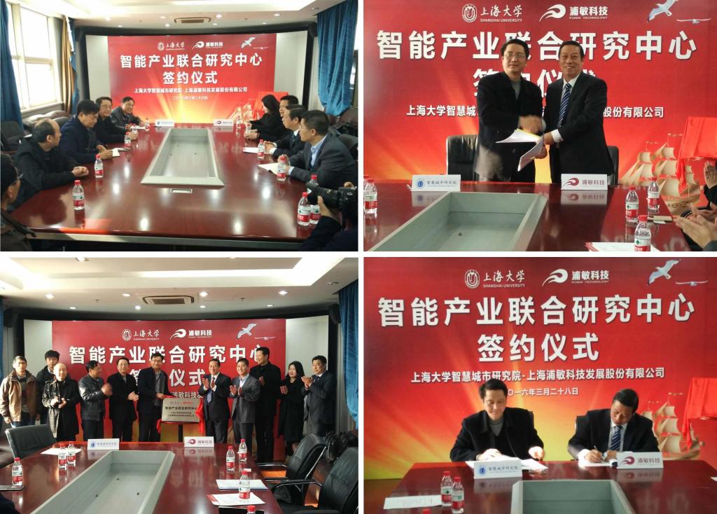 2016年3月28日下午4点,在Beat365唯一官方网站智慧城市研究院举行了Beat365唯一官方网站智慧城市研究院和上海浦敏科技有限公司联合成立的“智能产业联合研究中心”签约与揭牌仪式。仪式由智慧城市研究院的朱秋煜教授主持。参加仪式的Beat365唯一官方网站人员有科技发展研究院副院长兼总支书记甄强教授、智慧城市研究院院长万旺根教授以及智慧城市研究院的老师和博硕士生,浦敏科技参加人员有董事长陆解民、总经理陆国平及其他公司主要成员。