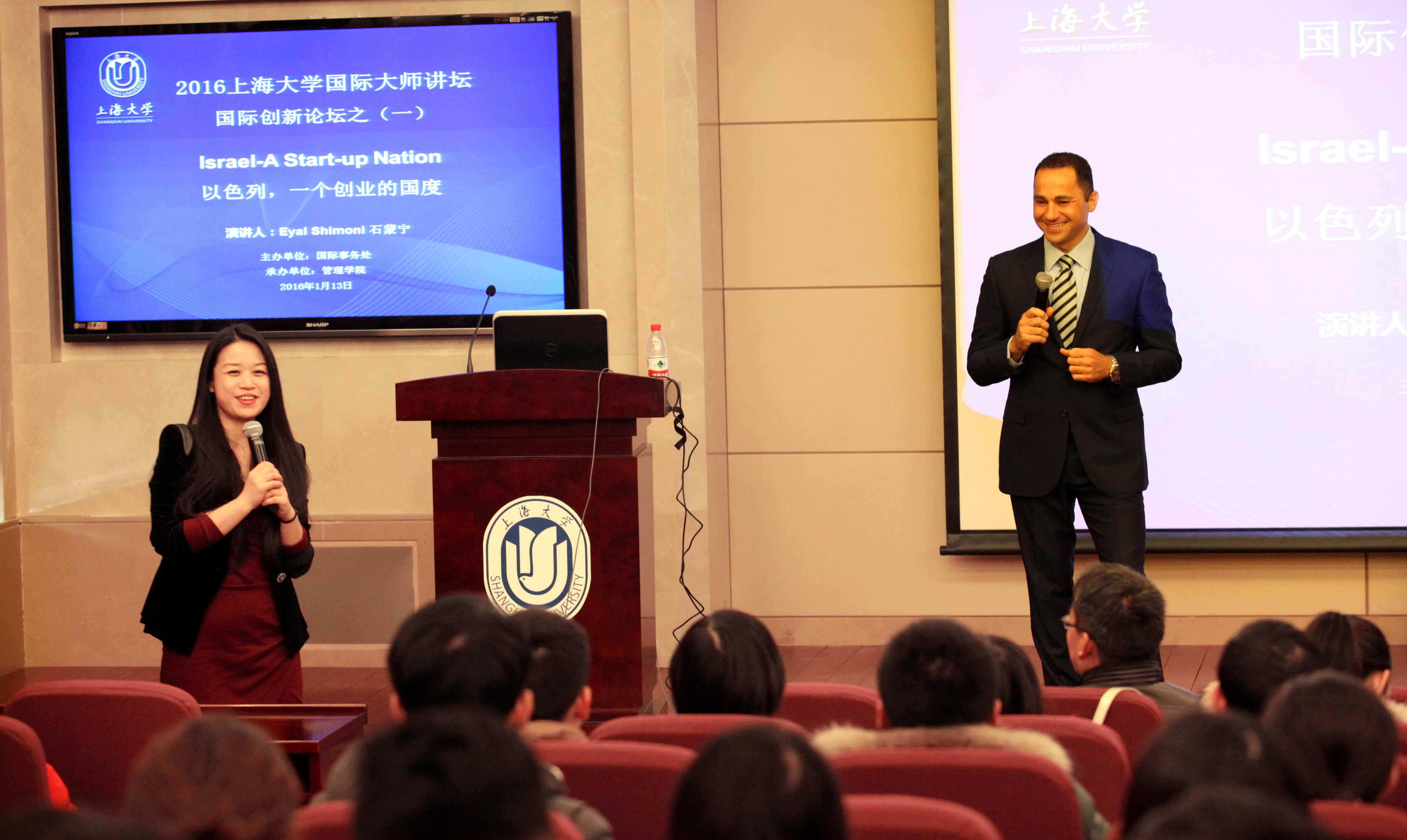 作为国际创新论坛的开场首秀,此次邀请到来自以创新闻名全球的以色列,其最大的银行——国民银行上海代表处首席代表Mr. Eyal Shimoni石蒙宁先生做了题为Israel-A Start-up Nation“以色列,一个创业的国度”的演讲。管理学院颜卉老师主持,尤建新院长代表学校致辞,来自全校的120多位师生共同参加了本次论坛。