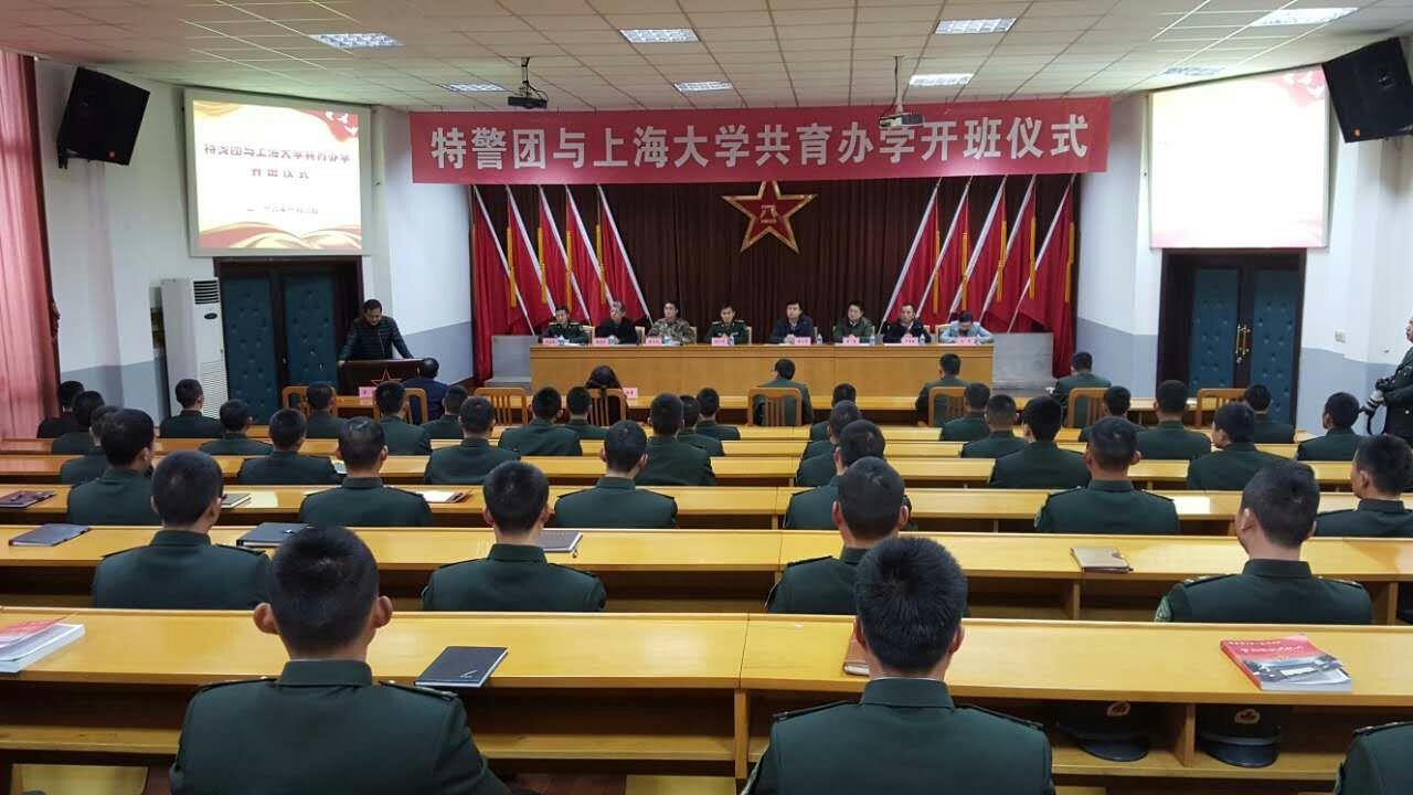 2016年1月6日下午,上海警备区特警团与Beat365唯一官方网站共育办学签约和开班仪式在特警团活动中心隆重举行,特警团符仁行政委、陈宝华副政委、特警团政治处朱金兵副主任、Beat365唯一官方网站学工办胡大伟主任、团委许烁书记、Beat365唯一官方网站继续教育学院林财兴院长和严惠根副院长及有关人员参加了签约和开班仪式,开班仪式有上海警备区特警团陈宝华副政委主持。