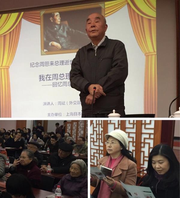 曾经长年担任周总理的日语翻译、见证中日建交历史的周斌先生作了近四个小时的精彩演讲。周老通过一个个感人至深的小故事,多角度、深层次地诠释了总理为了国家、为了人民鞠躬尽瘁、死而后已的崇高精神,以及严于律己、宽以待人的工作作风和人格魅力,引起与会者强烈的共鸣。