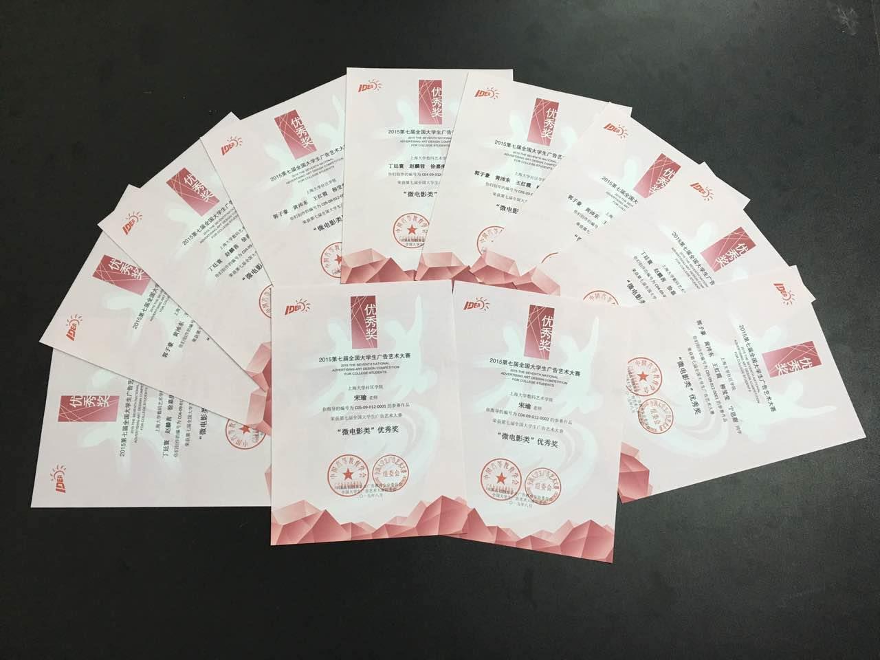 近日,“第七届全国大学生广告艺术大赛颁奖典礼”在北京全国政协礼堂隆重举行。由我院宋瑜、林莹两位老师指导参赛的学生作品共获得全国总决赛优胜奖2项,上海赛区二等奖2项,三等奖6项,优胜奖1项,丁廷寰等25位数码学子获奖,再续我院师生在全国大广赛这一艺术舞台的优异战绩。