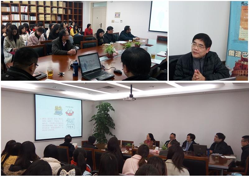 马利中教授是“文革”结束,恢复高考后的77级毕业生,长期在政府机构和高校从事日语教学和科研工作。目前担任上海市日本交流研究协会副会长、上海市日本学会理事、复旦大学日本研究中心兼职教授、上海市政府人口发展专家咨询委员等职;主持上海市政府决策咨询课题、上海市引进高层次海外留学人员专项课题等多项项目。马利中教授的演讲紧扣语言和文化结合的时代特点,思路清晰,叙述层次分明,数据充实,语言风趣幽默。他对新词流行语的研究心得和体会对外语工作者有很大的启示。最后,马教授和在座的教师、研究生进行了互动,本次讲座在大家的热烈掌声中圆满结束。