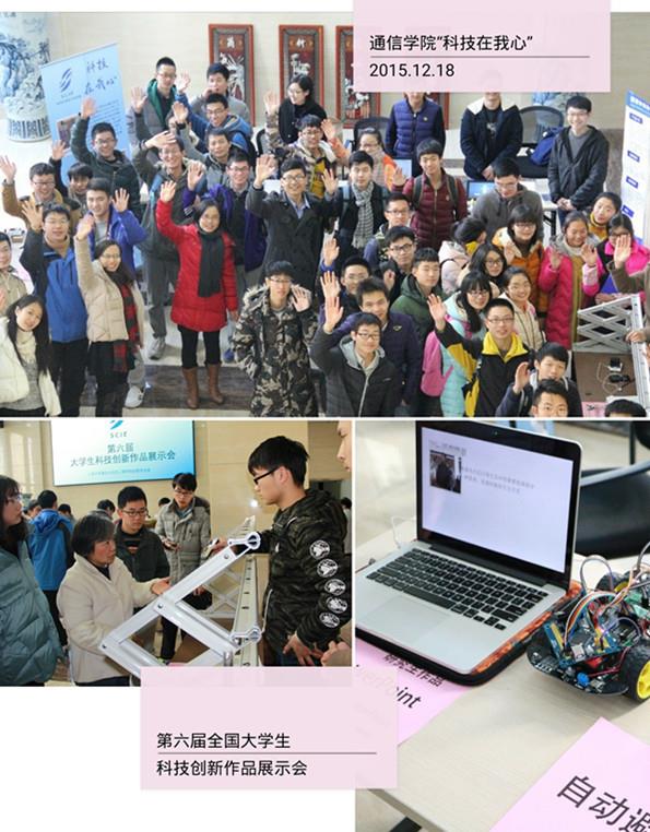 2015年12月18日下午1点,Beat365唯一官方网站通信与信息工程学院第六届大学生科技创新作品展在校宝山校区翔英大楼一楼大厅隆重举办。通信学院执行院长王廷云,副院长严壮志、彭章友,党委副书记胡乾源等领导、学院部分教师、团委书记薛程、14级辅导员彭秀平、水凌波参加了此次活动。作品展历时两个多小时,共展出十余件展品,超过200名师生到场参观。