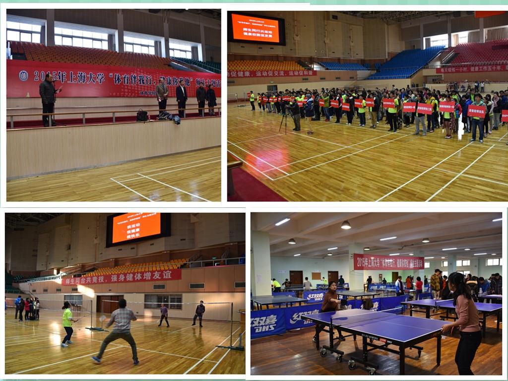 本次师生运动主题活动由体育学院主办,活动项目有乒乓球、羽毛球、跳绳和足球射门。每个代表队由12位师生组成,其中在职教职工4位,(含处级干部1位),普通学生8位。体育学院教职工作为领队和教练负责各代表队的训练指导和活动组织。为了不影响上课和工作,活动时间一般安排在中午和晚上举行,预计师生运动主题活动持续到2016年1月8日结束。