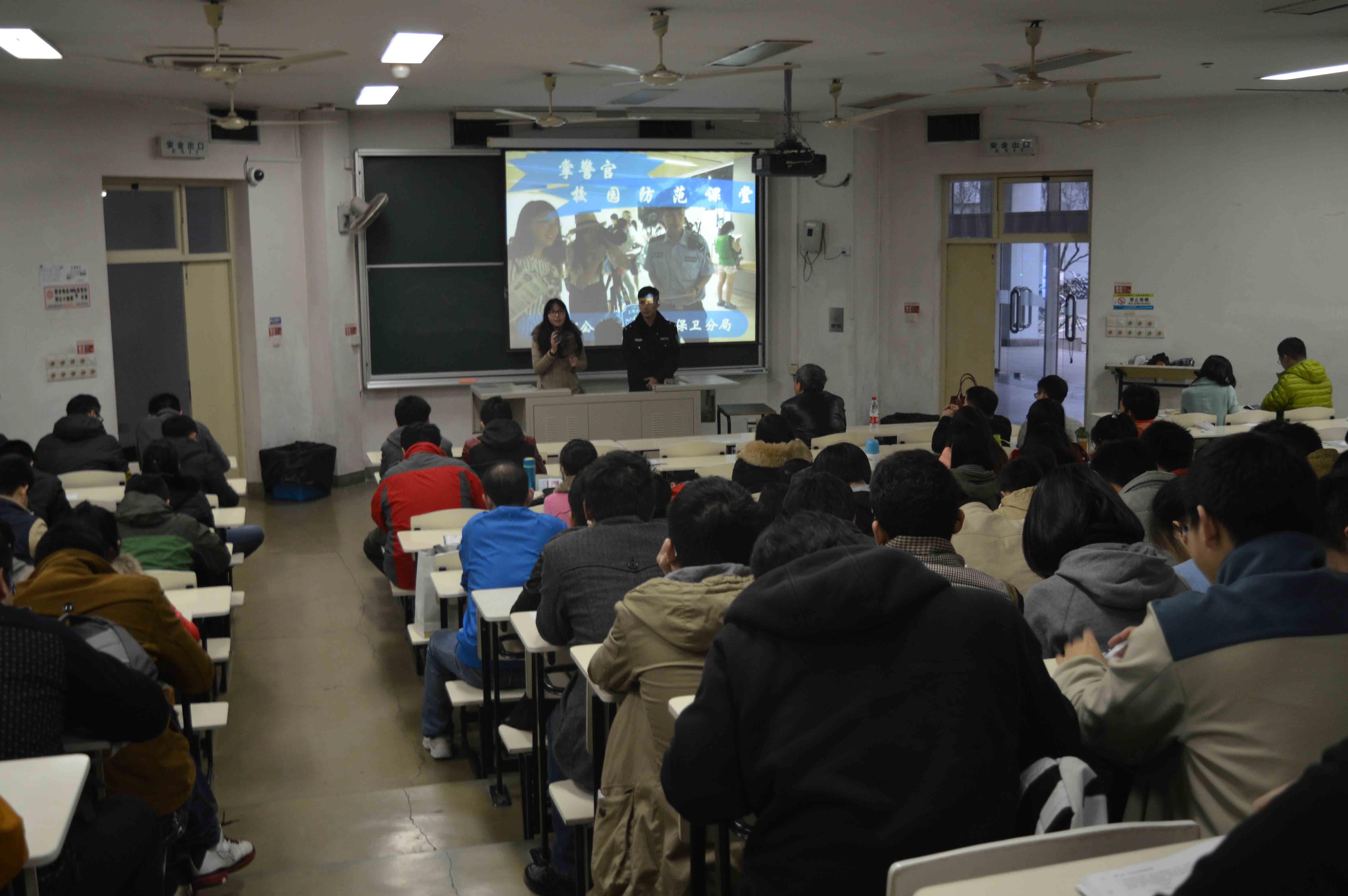 讲座伊始,掌坤警官从一个耳熟能详的小案例入手,告诫同学们如何在生活中防止被骗。接着,又通过一个动画视频,生动描述了一个高校大学生被电信诈骗的全过程,给在座的各位敲响警钟。随后,又通过各类校园诈骗的真实案例,一一破解骗子们五花八门的欺骗伎俩。讲座过程中,掌警官还与同学们多次互动,现场模拟案例,让同学们感同身受。掌警官说:“高校校园是开放性的,自习教室、食堂、图书馆,甚至是学生寝室都有可能成为骗子和盗窃分子犯案的地点,同学们不能怀有侥幸心理。”同学们反应十分热烈,惊叹纷纷。
