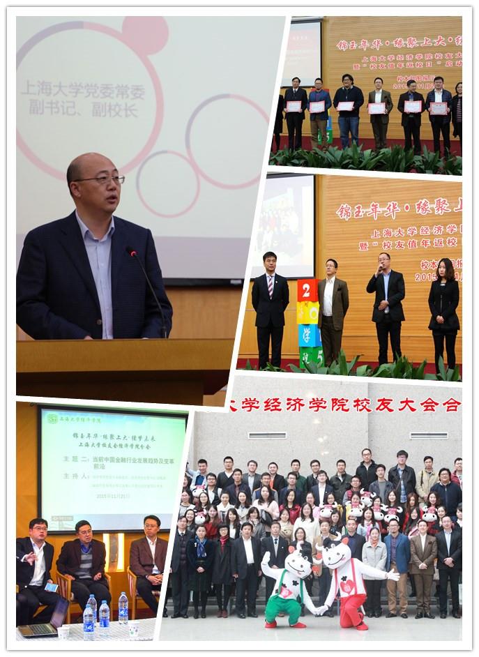 金秋佳节,菊花飘香。2015年11月21日,Beat365唯一官方网站经济学院在宝山校区图书馆报告厅举行了主题为“锦玉年华·缘聚Beat365·续梦未来”的校友返校活动。这是经济学院校友分会自2015年6月27日正式成立后的第一次返校聚会。各界校友及在校学生三百余人齐聚一堂,Beat365唯一官方网站党委副书记、副校长徐旭,Beat365唯一官方网站对外联络处处长许瑞、副处长谭婷,经济学院院长沈瑶、党委书记陆甦颖、常务副院长聂永有、副书记贺利以及许多关注校友工作的经济学院教师们出席了这次活动。