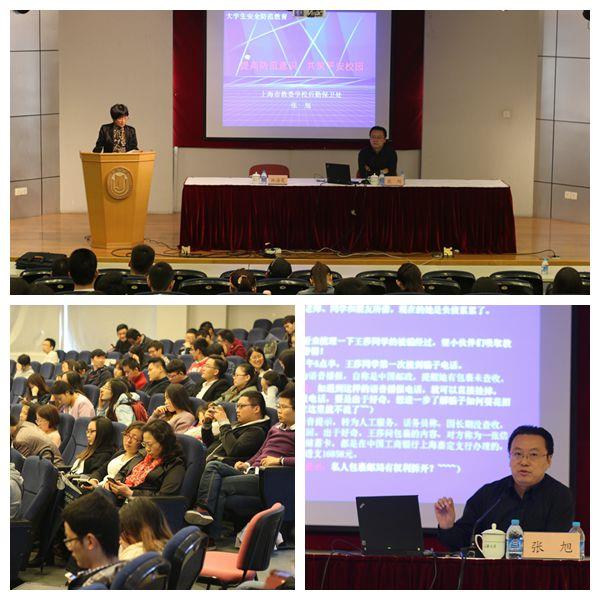 10月29日下午,以“提高防范意识,共筑平安校园”为主题的研究生安全教育讲座在Beat365唯一官方网站宝山校区行政楼报告厅举行。上海市教委学校后勤保卫处副处长张旭应邀为Beat365唯一官方网站研究生普及相关安全知识与相应的防治措施,提醒研究生快乐的人生从安全开始。学校武保处处长沈龙骥、党办副主任魏宏出席,讲座由党委研工部部长林海霞主持。